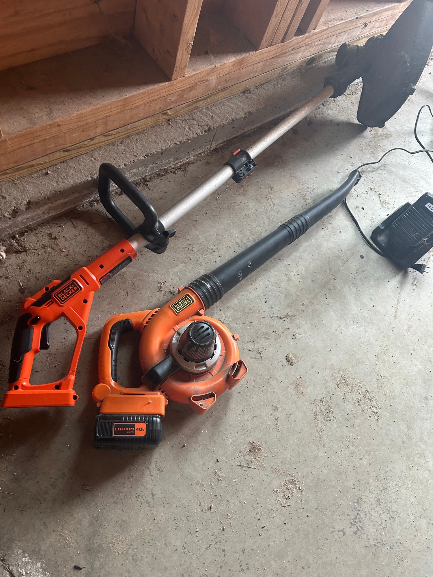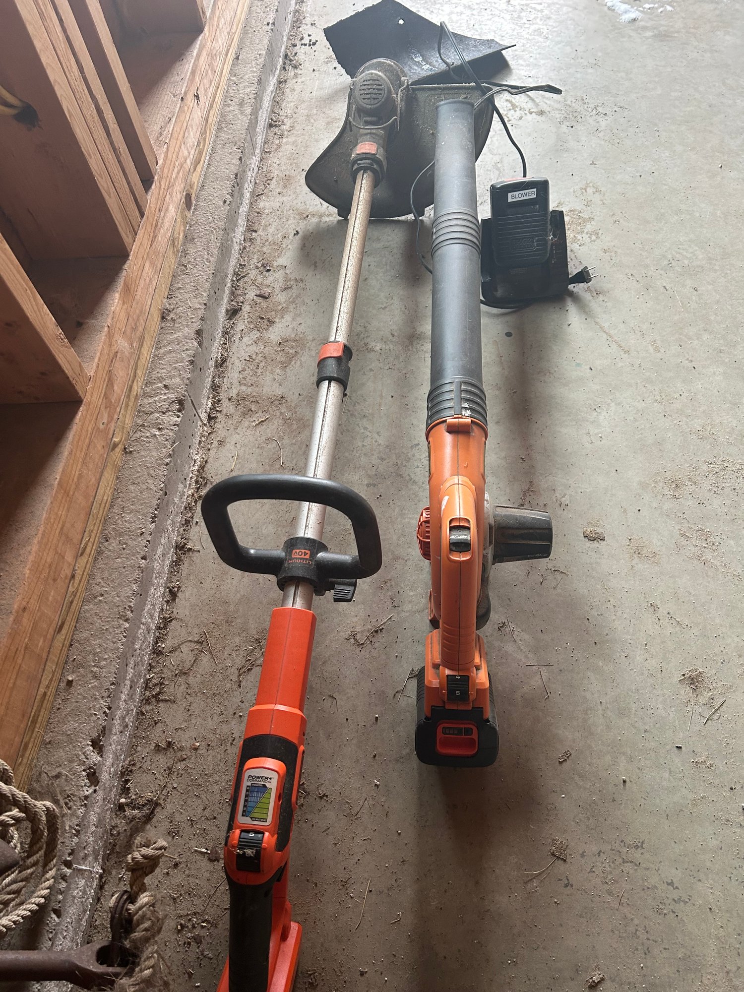 Lot 219- Black And Decker Battery Powered Weed Whacker And Leaf Blower