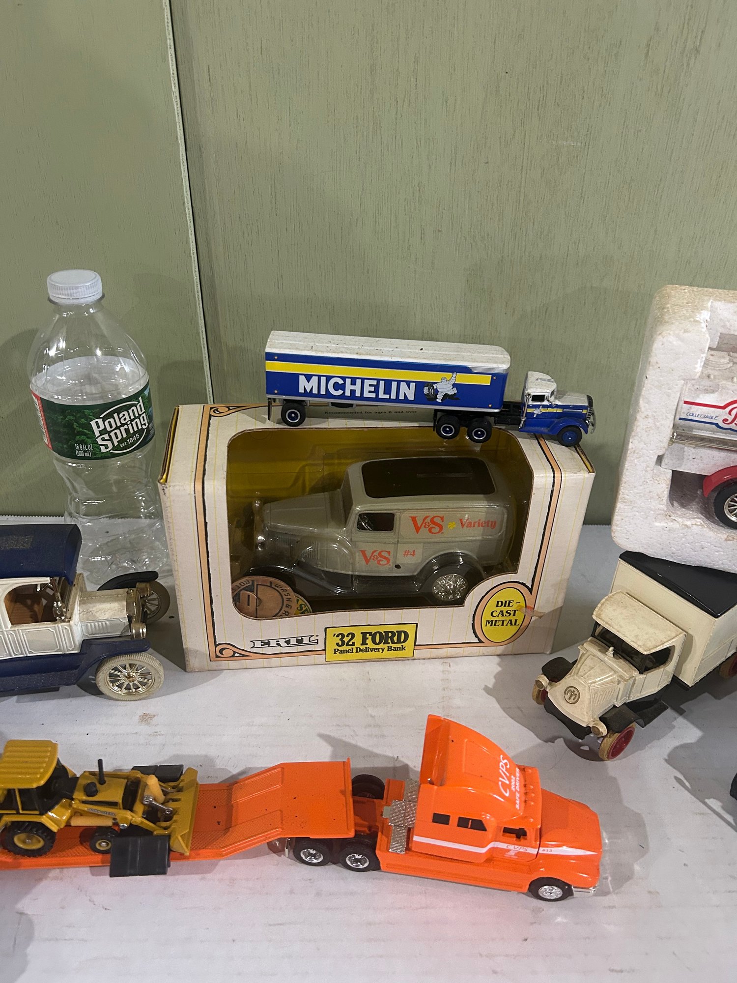 Lot 222- Seven Die Cast Banks And Two Other 18-wheeler Toys