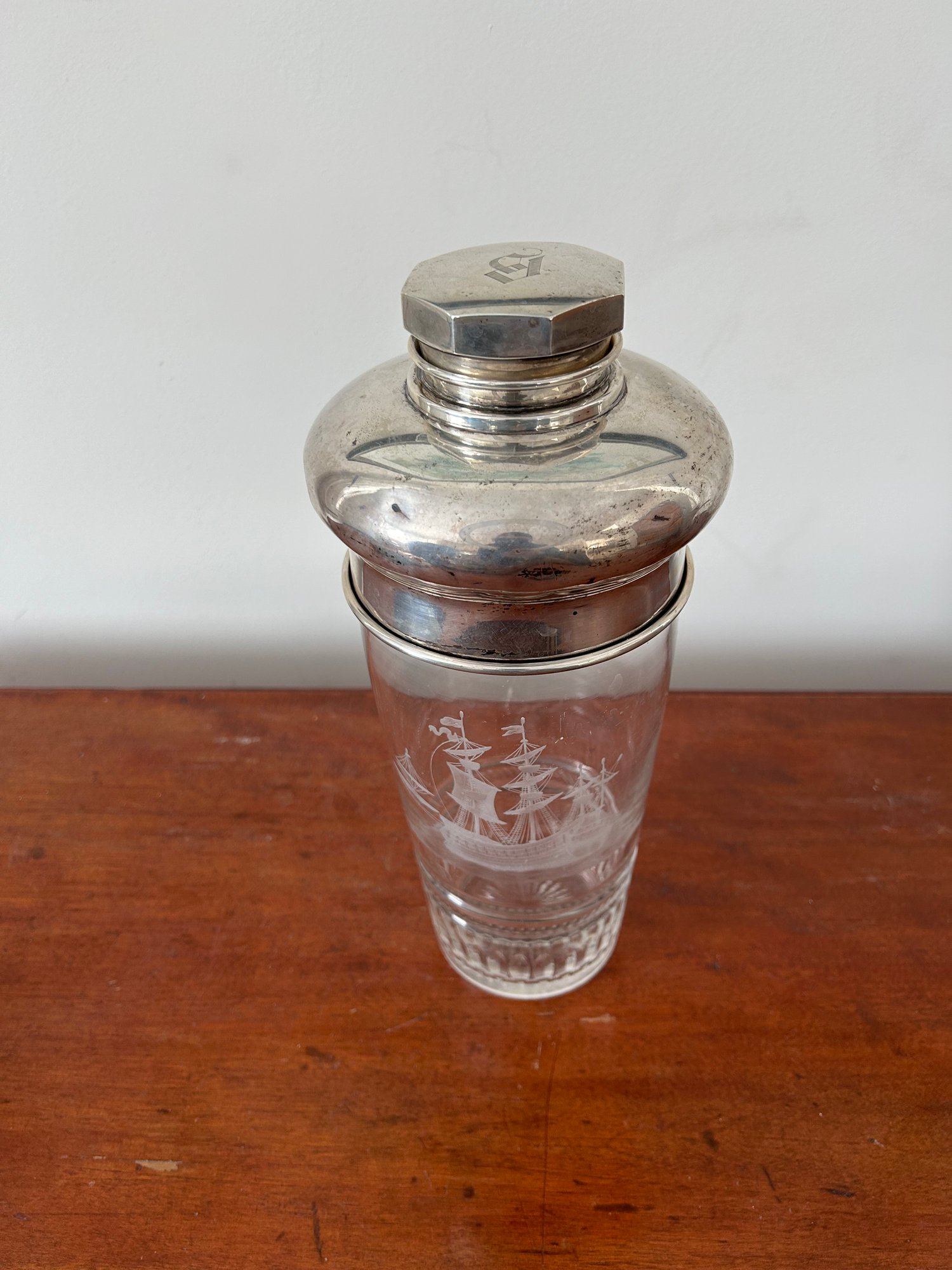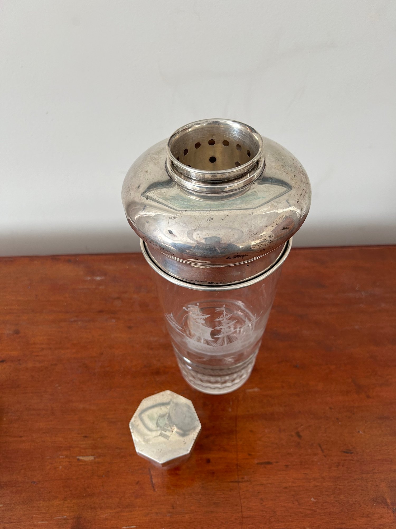 Lot 25- Large Cut Glass Drink Mixer With Sterling Silver Top 303 Grams