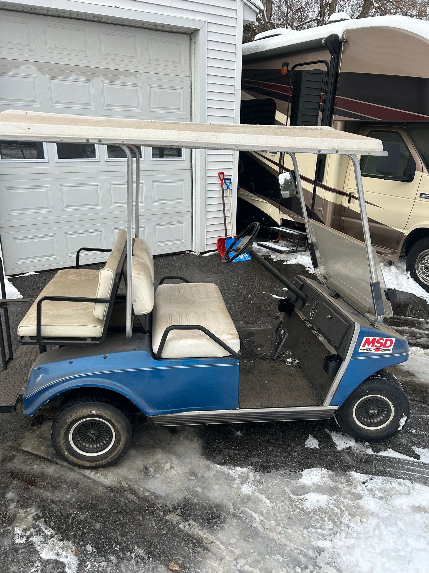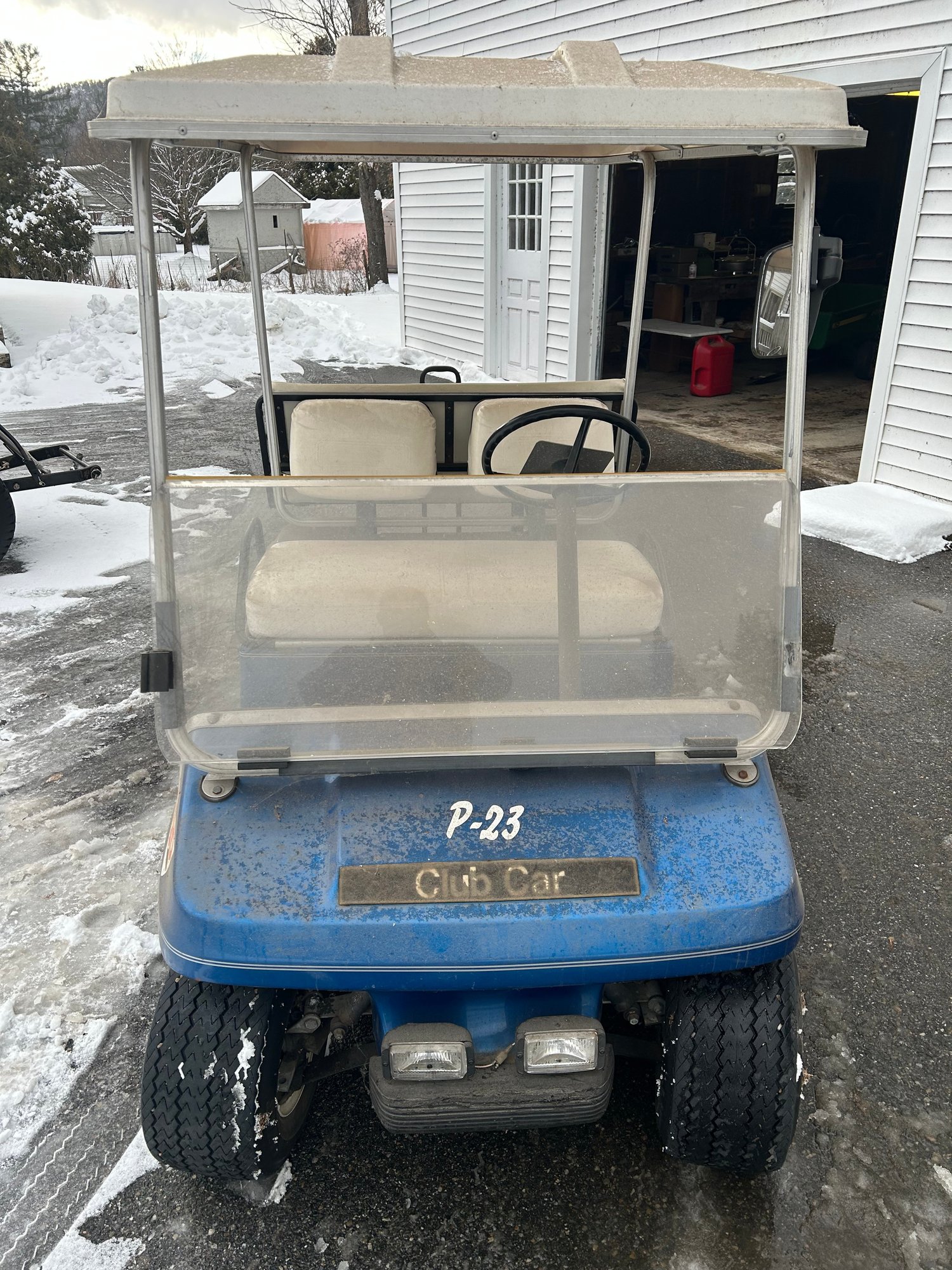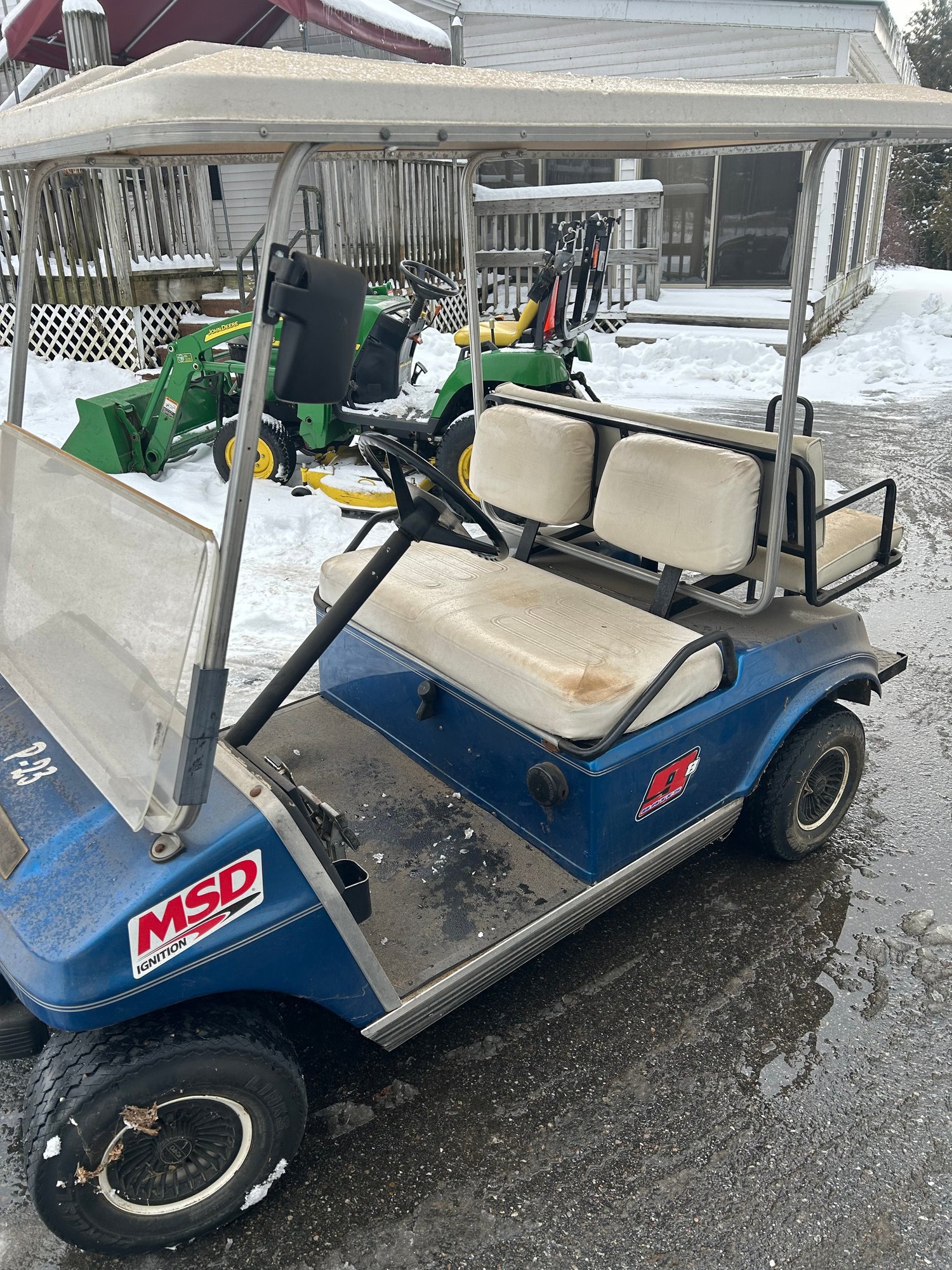 Lot 311- Blue Gas Powered Golf Cart. Starts But Does Not Stay Running