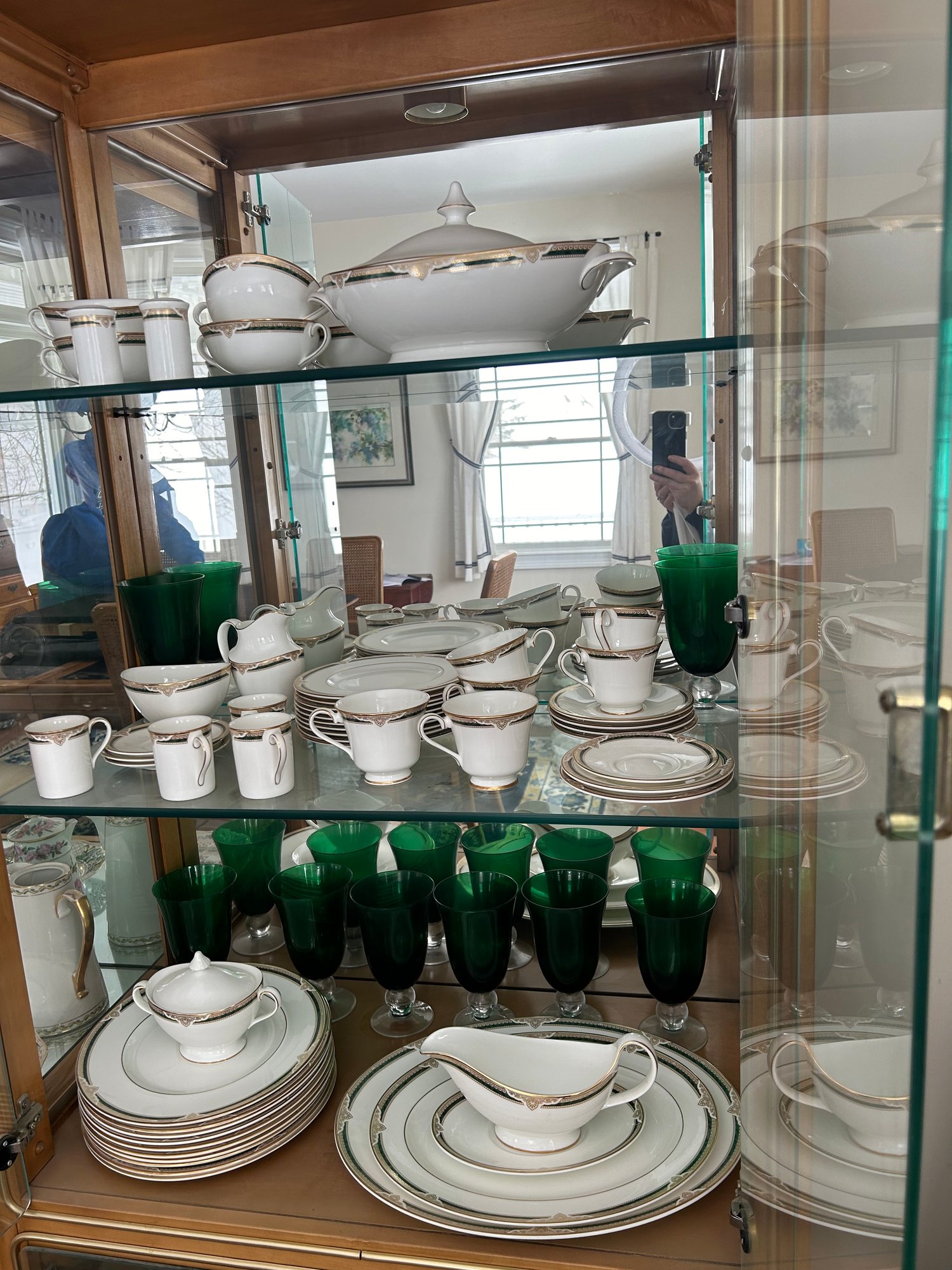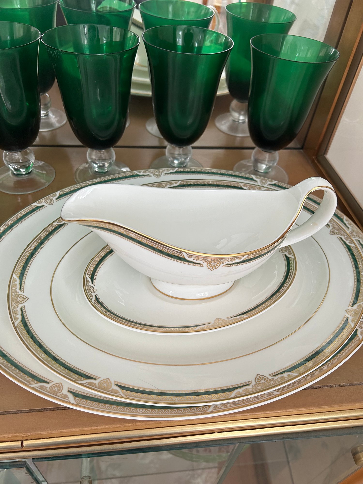 Lot 32- Royal Dutton Fine Bone China Forsyth Set With Green Goblets