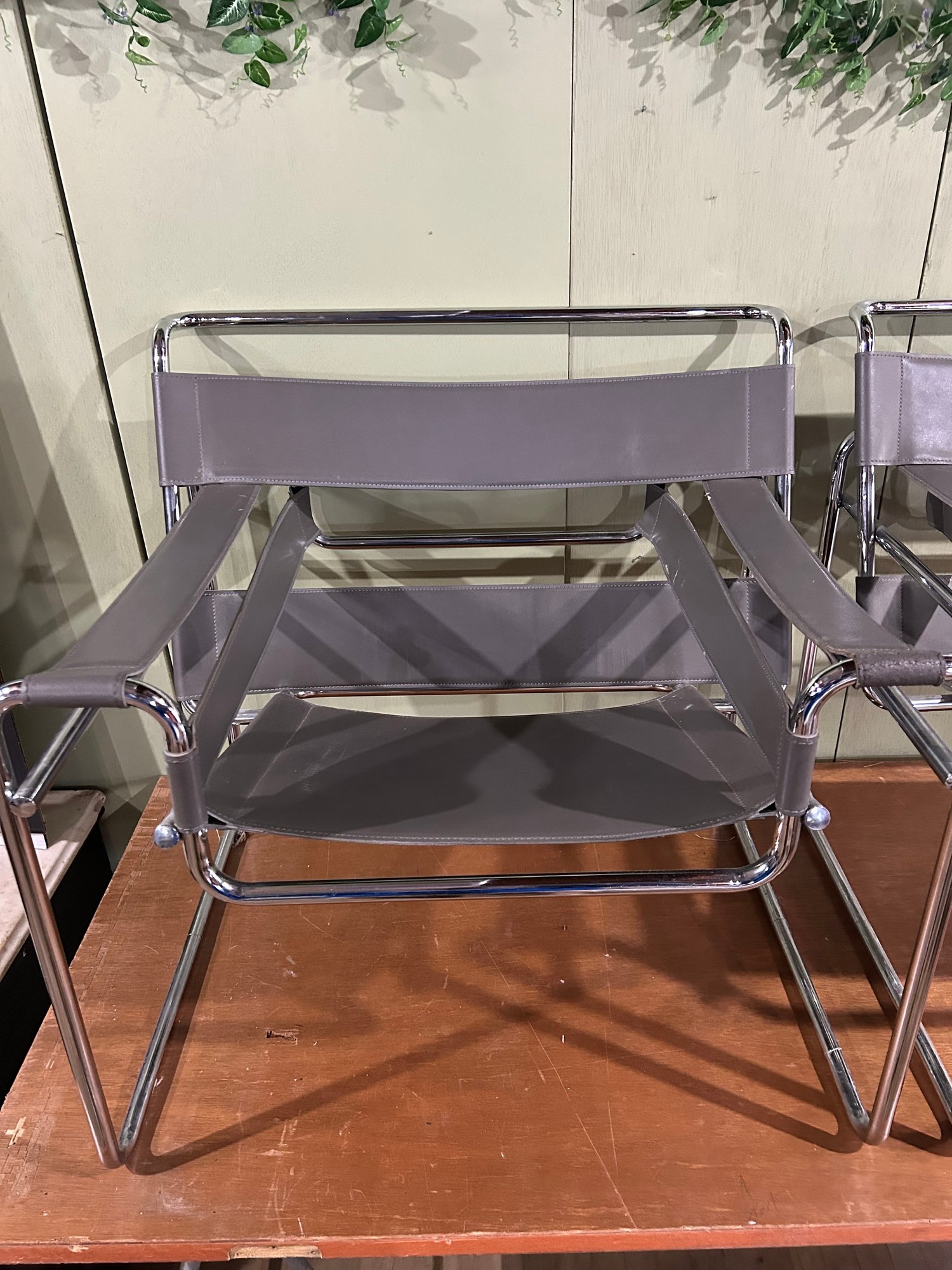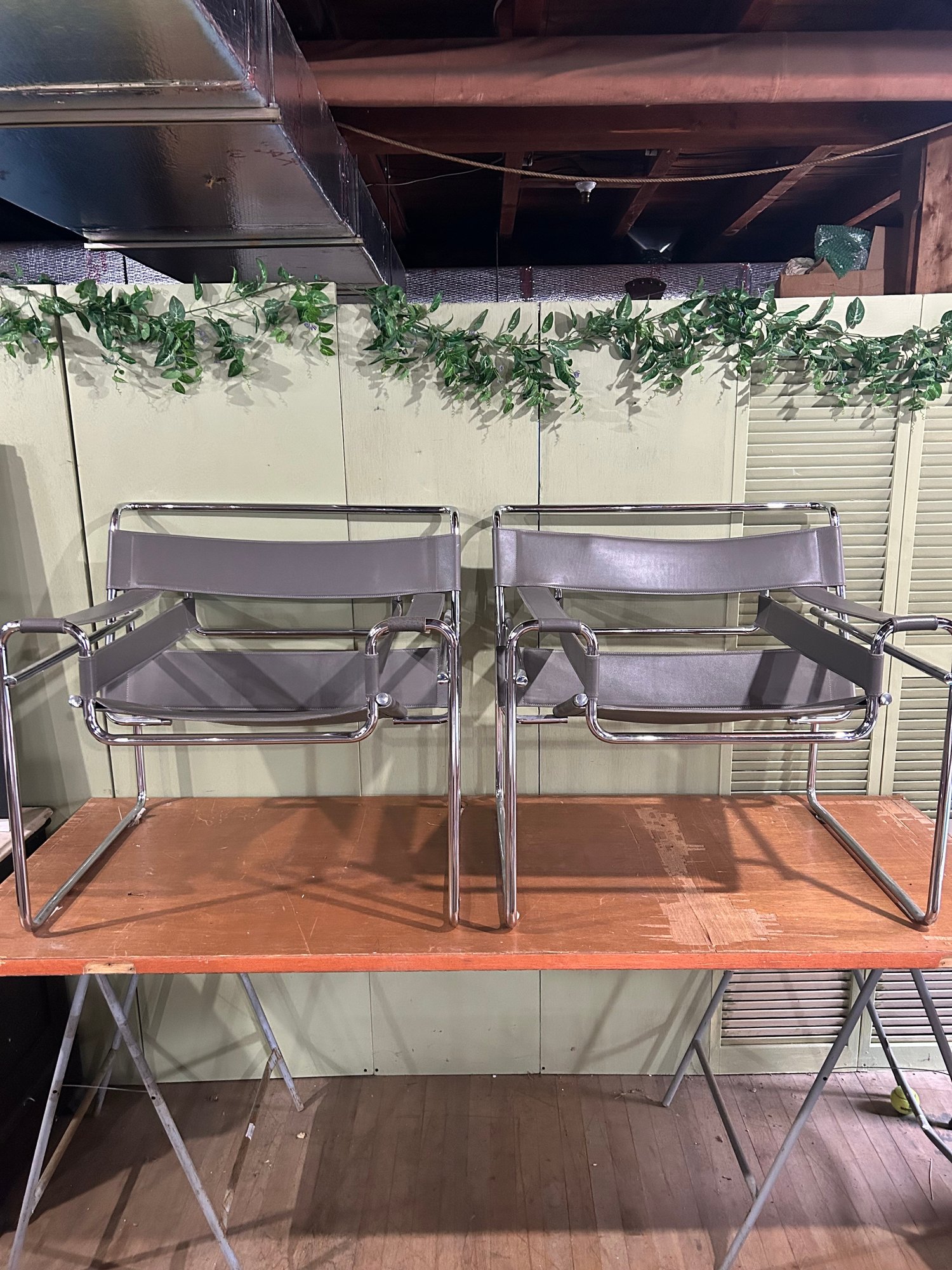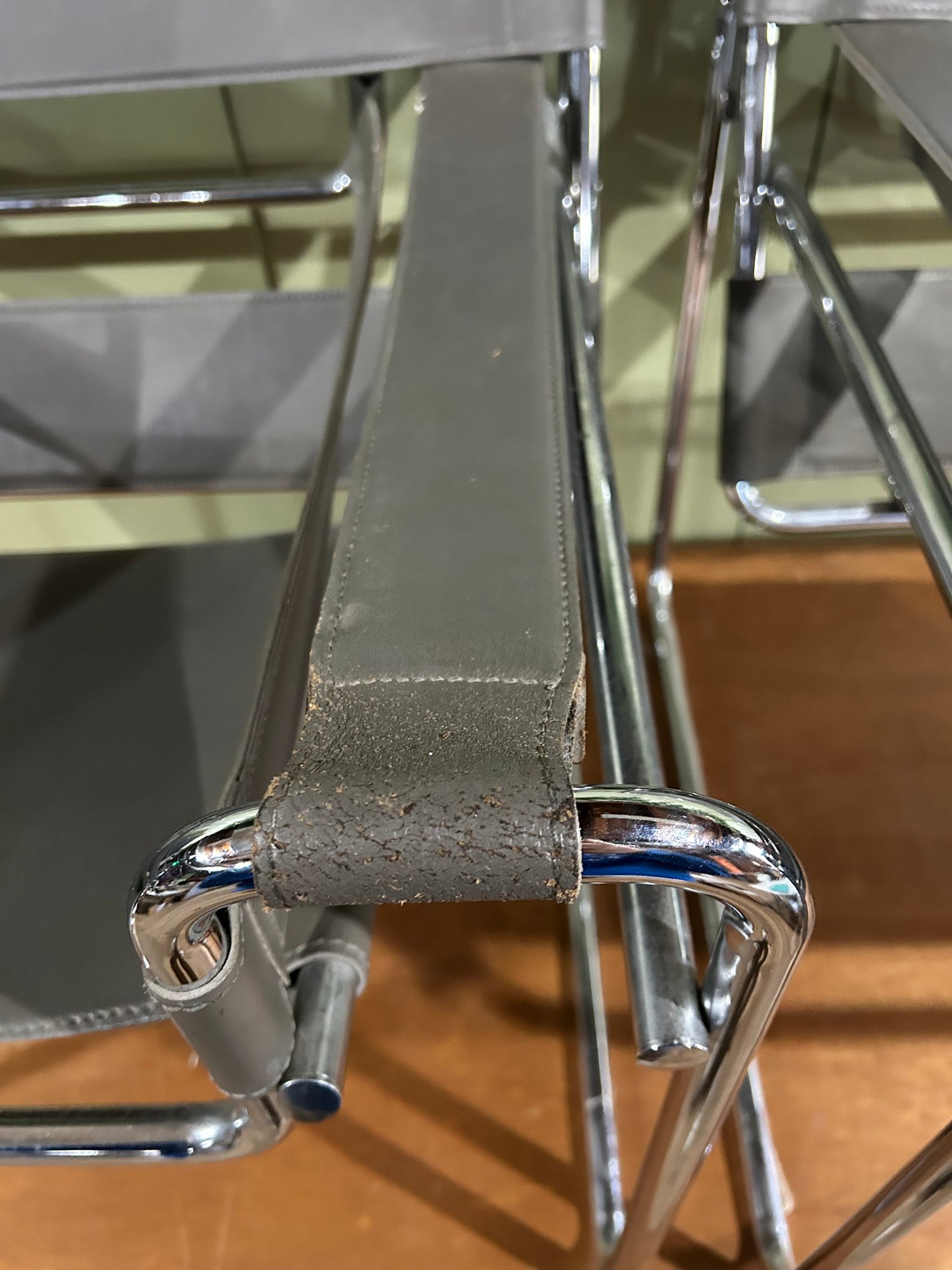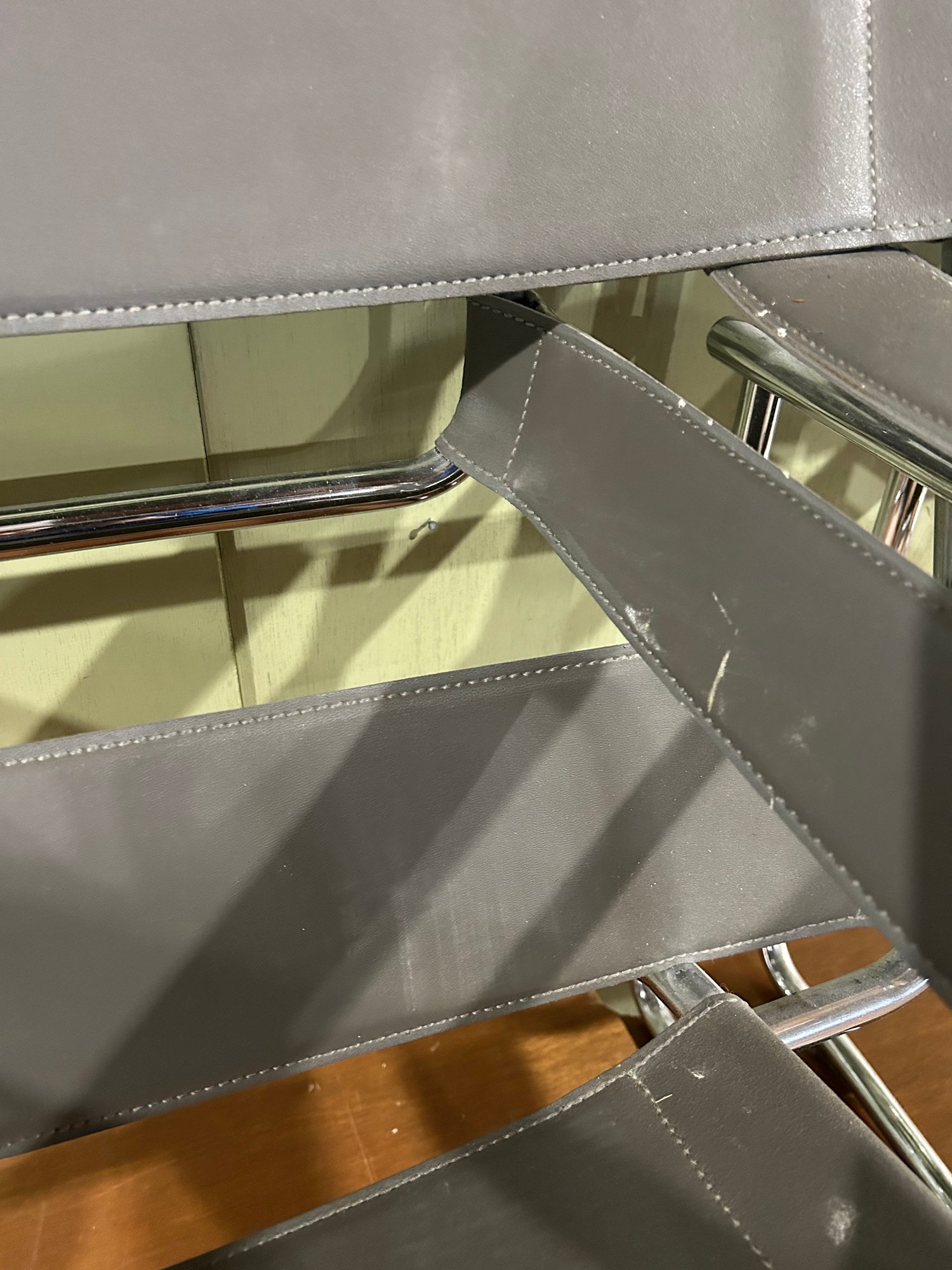 Solid chairs. See pictures for condition. Made of stainless steel and leather. Great chairs!