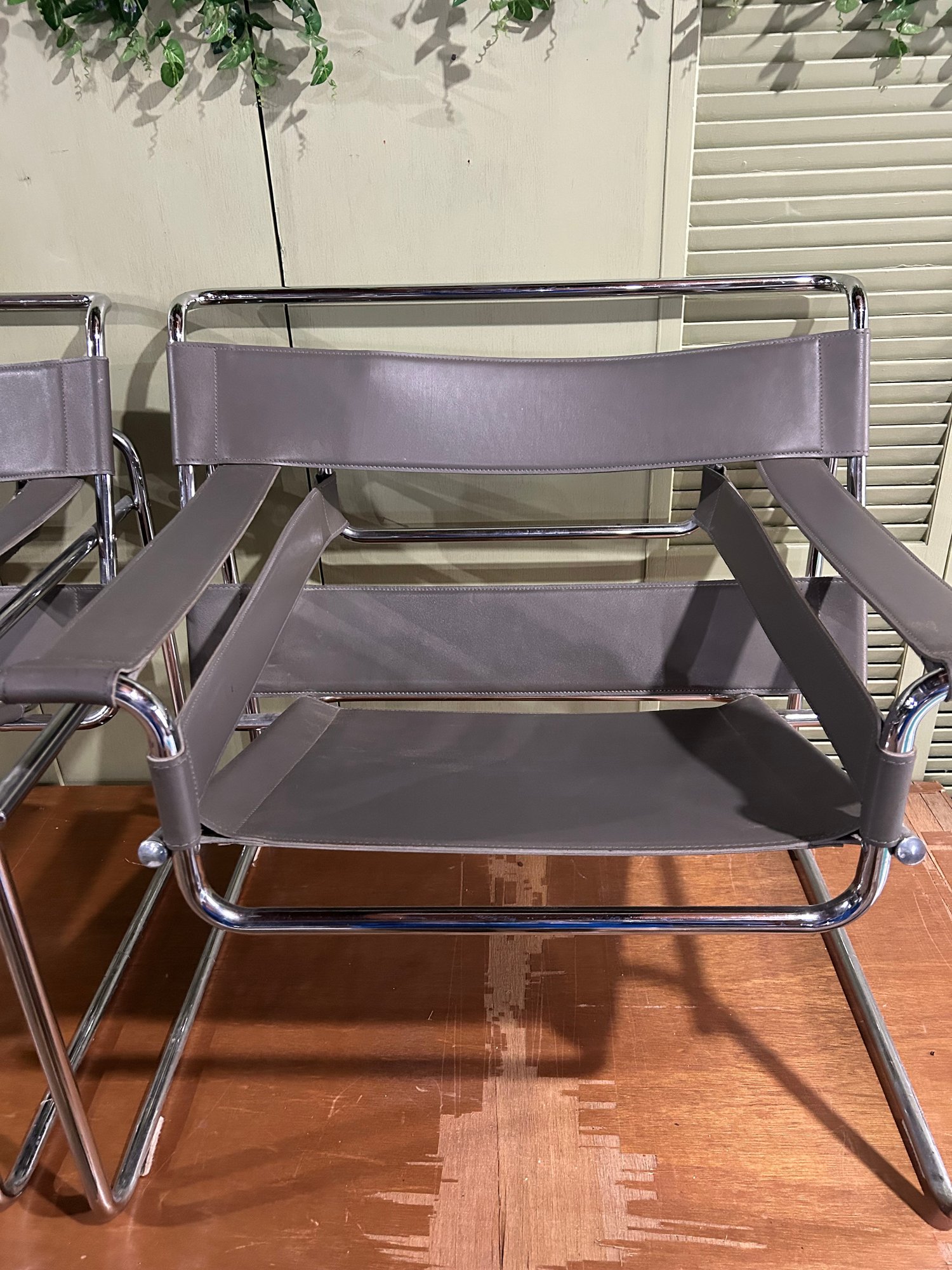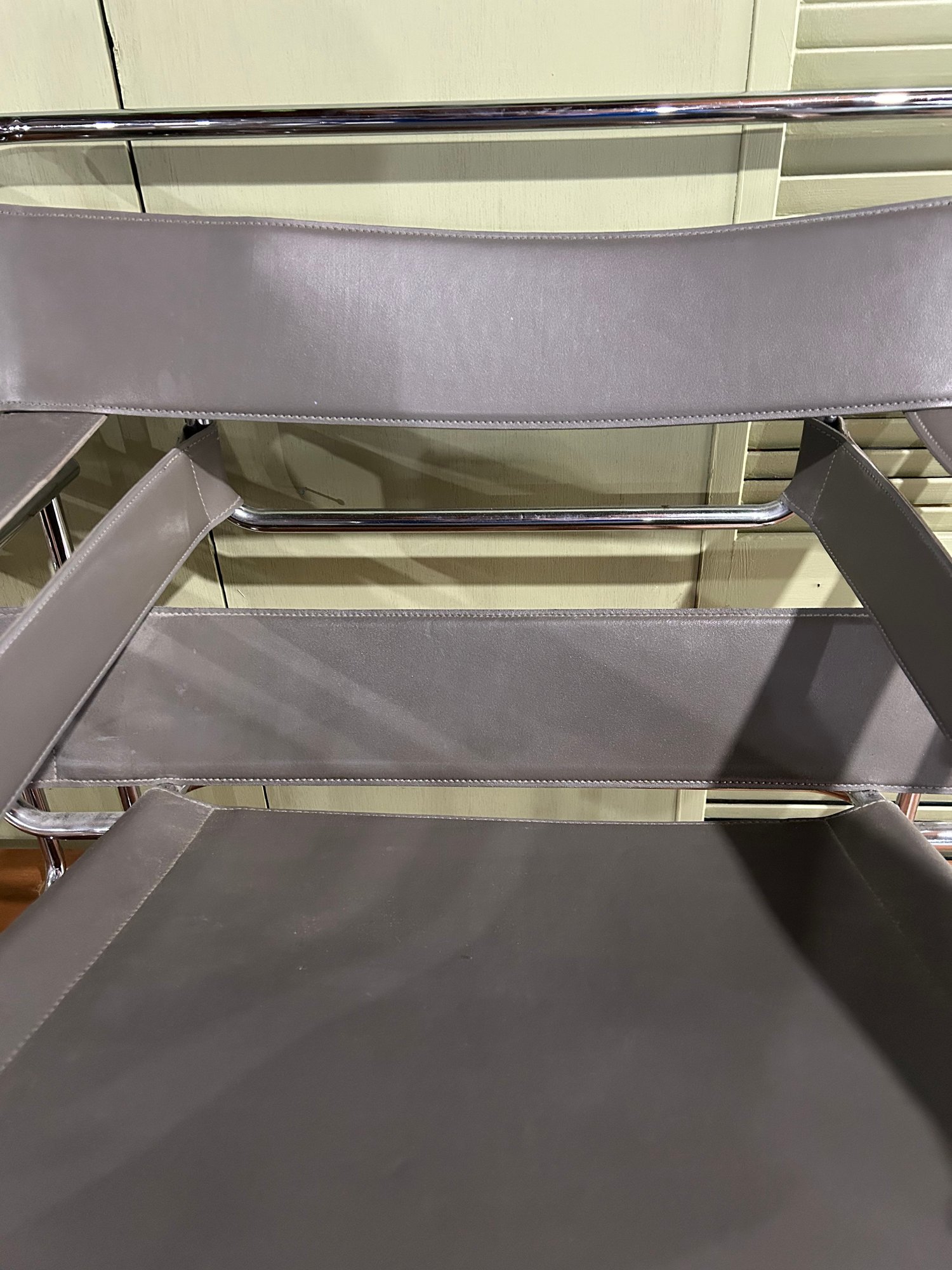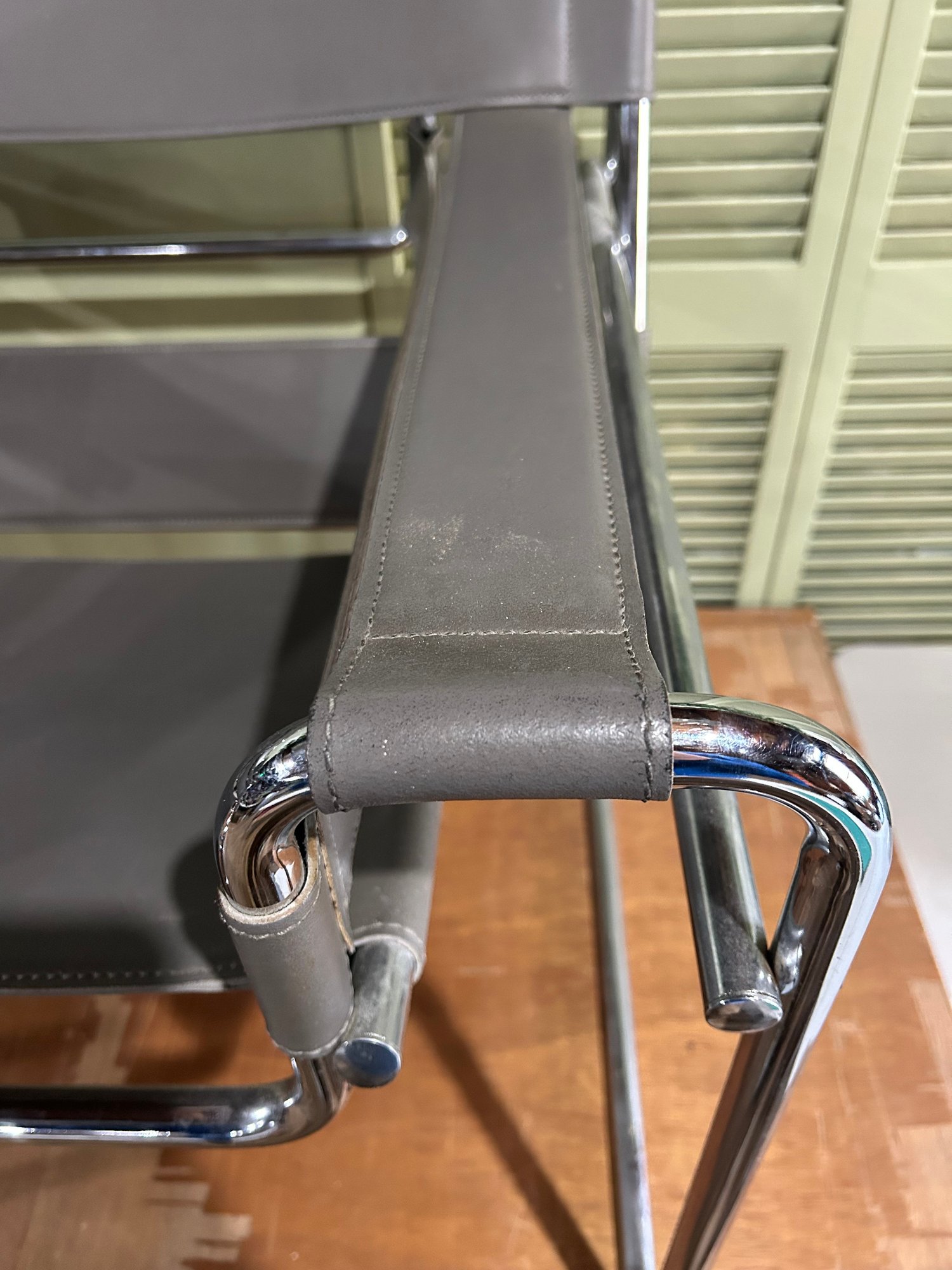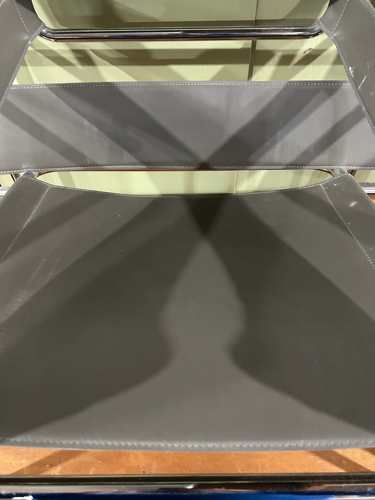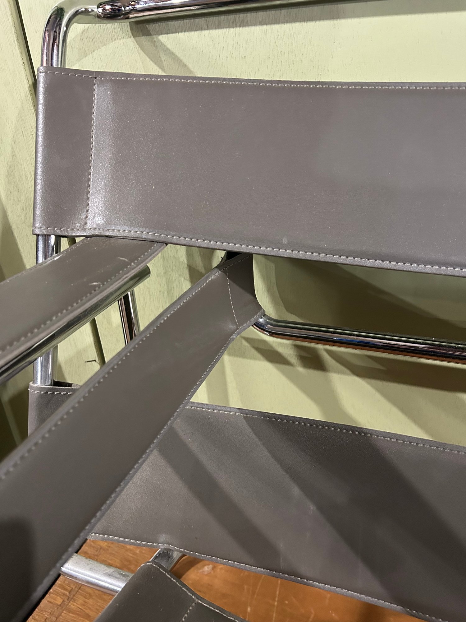 Solid chairs. See pictures for condition. Made of stainless steel and leather. Great chairs!