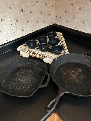 Lot 59-two Lodge Cast Iron Pans And A Popover Pan