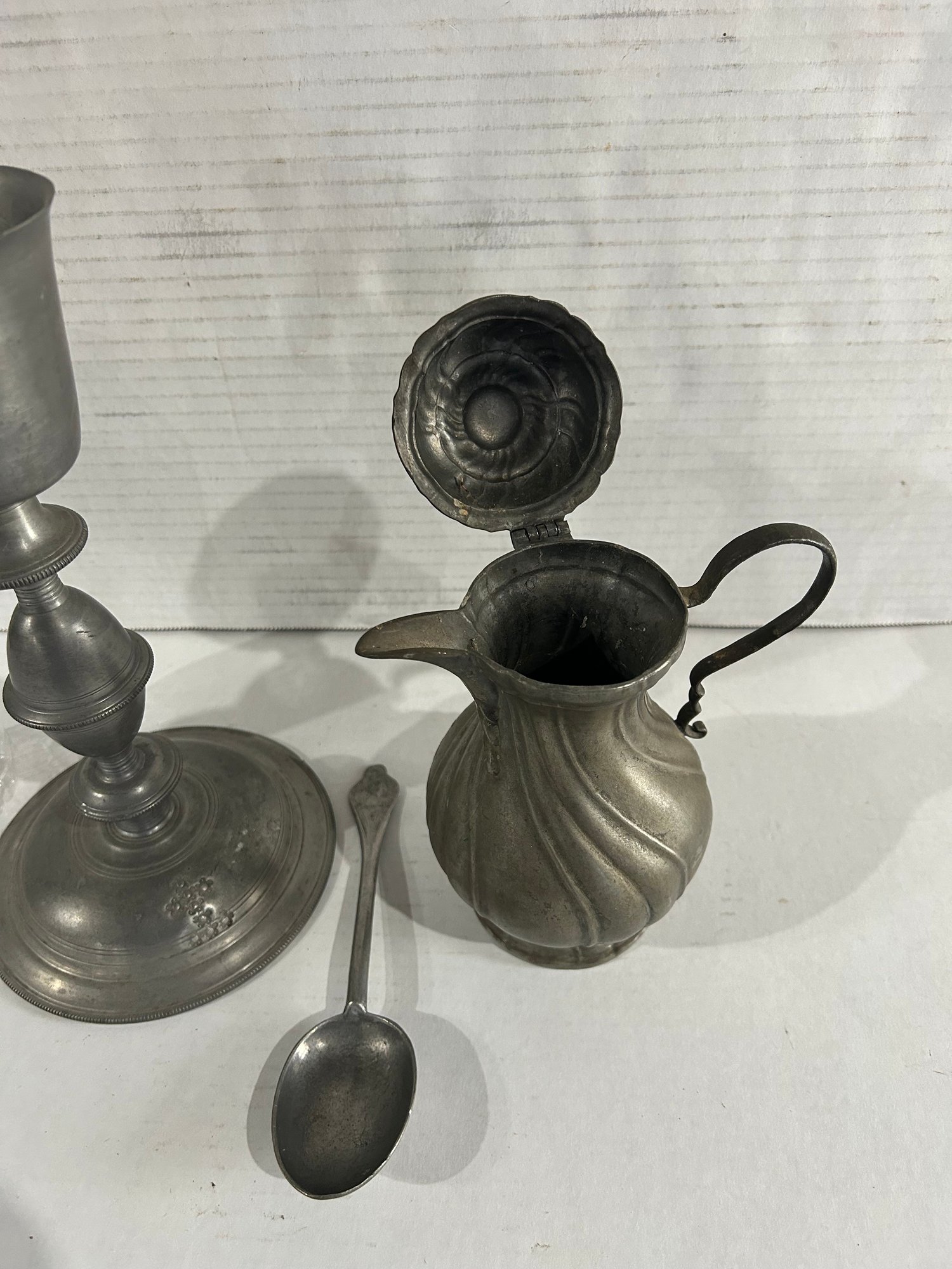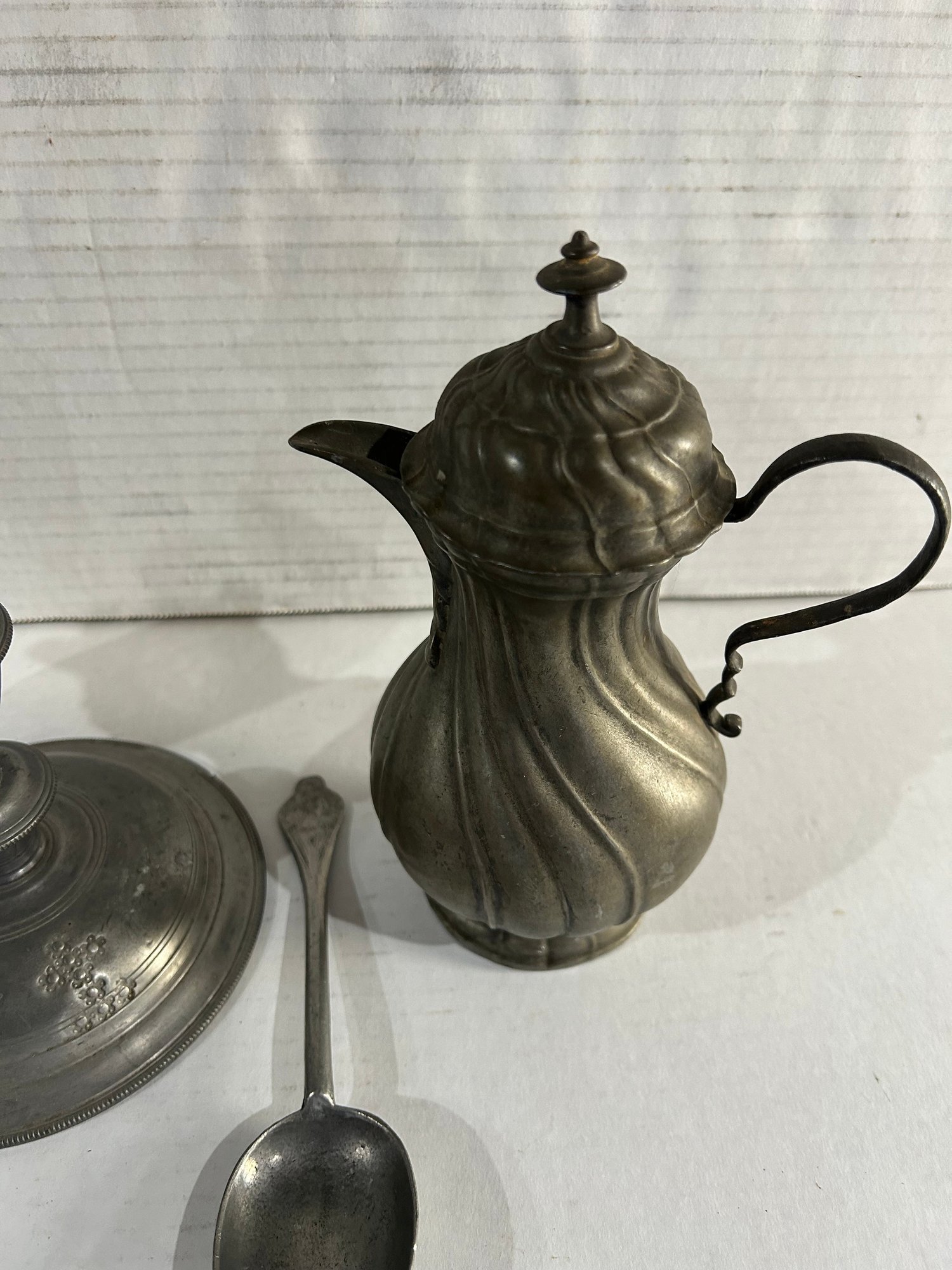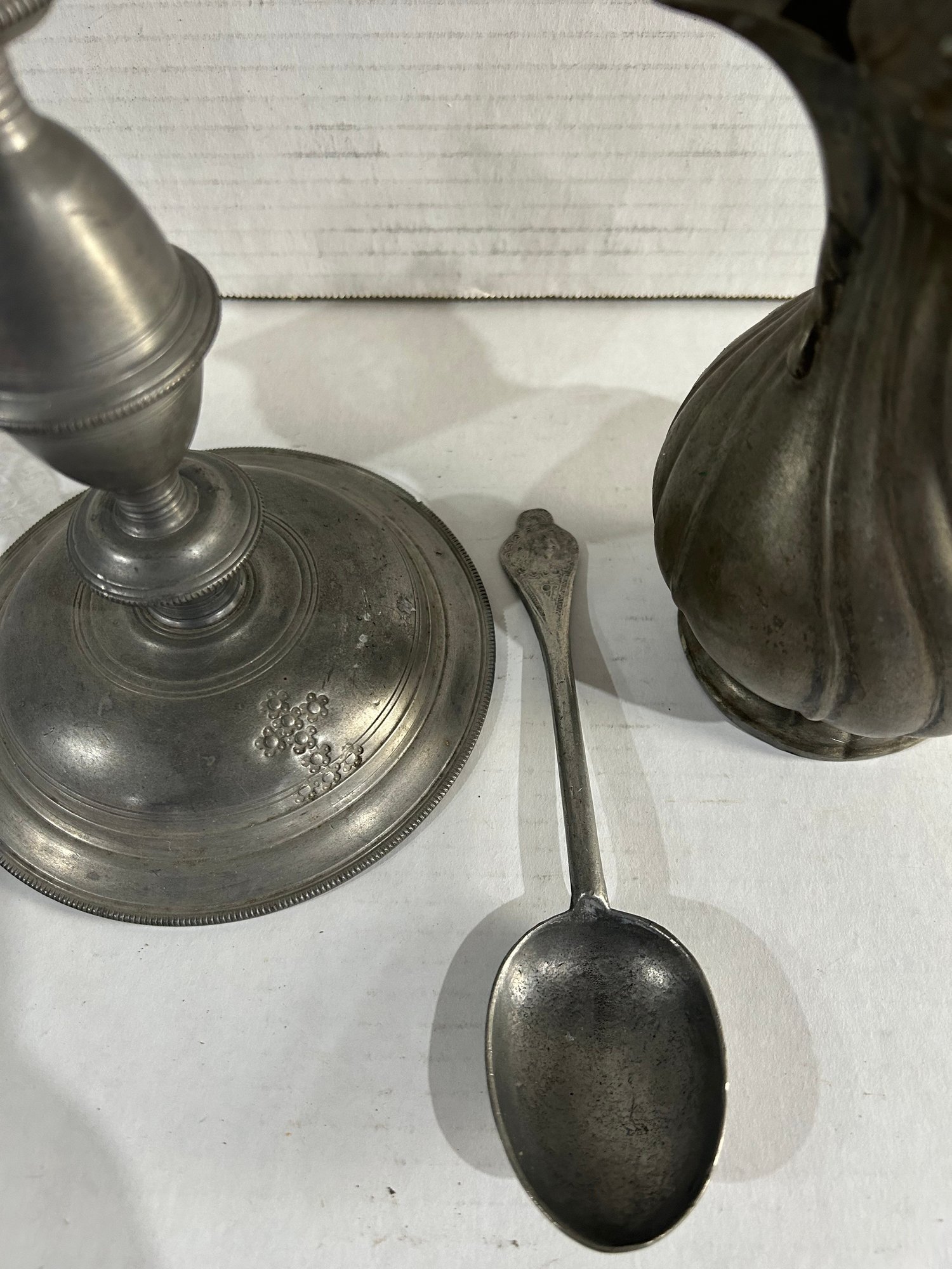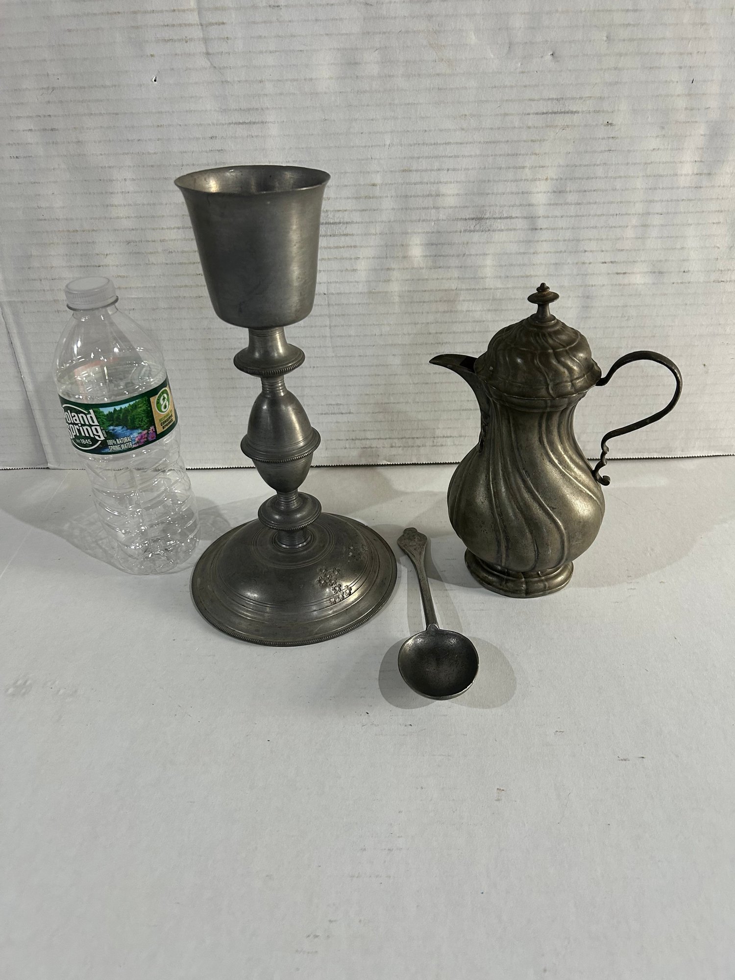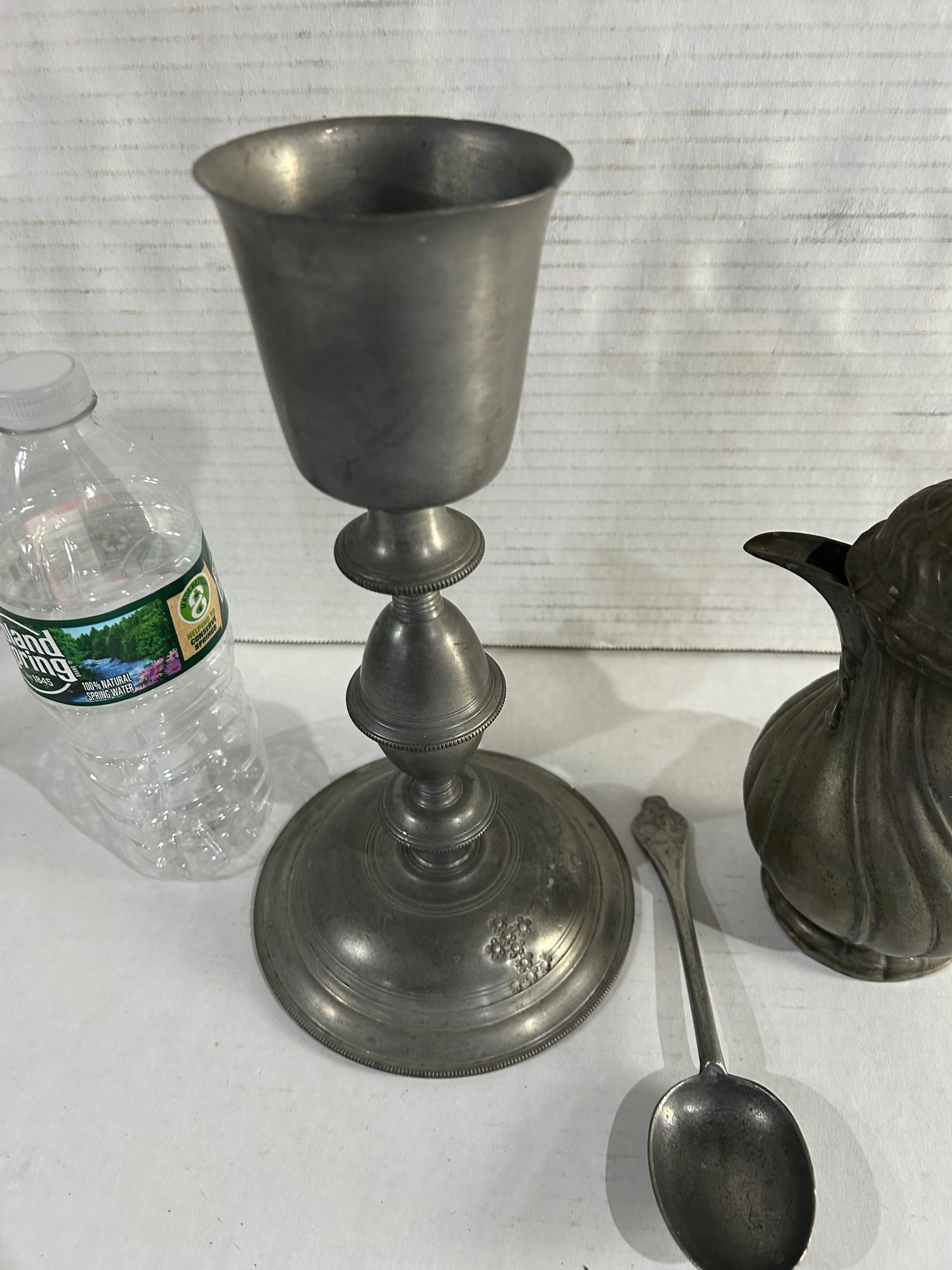Lot 61- Pewter Goblet, Continental Pewter Pitcher And 18 Century Dog Nose Spoon