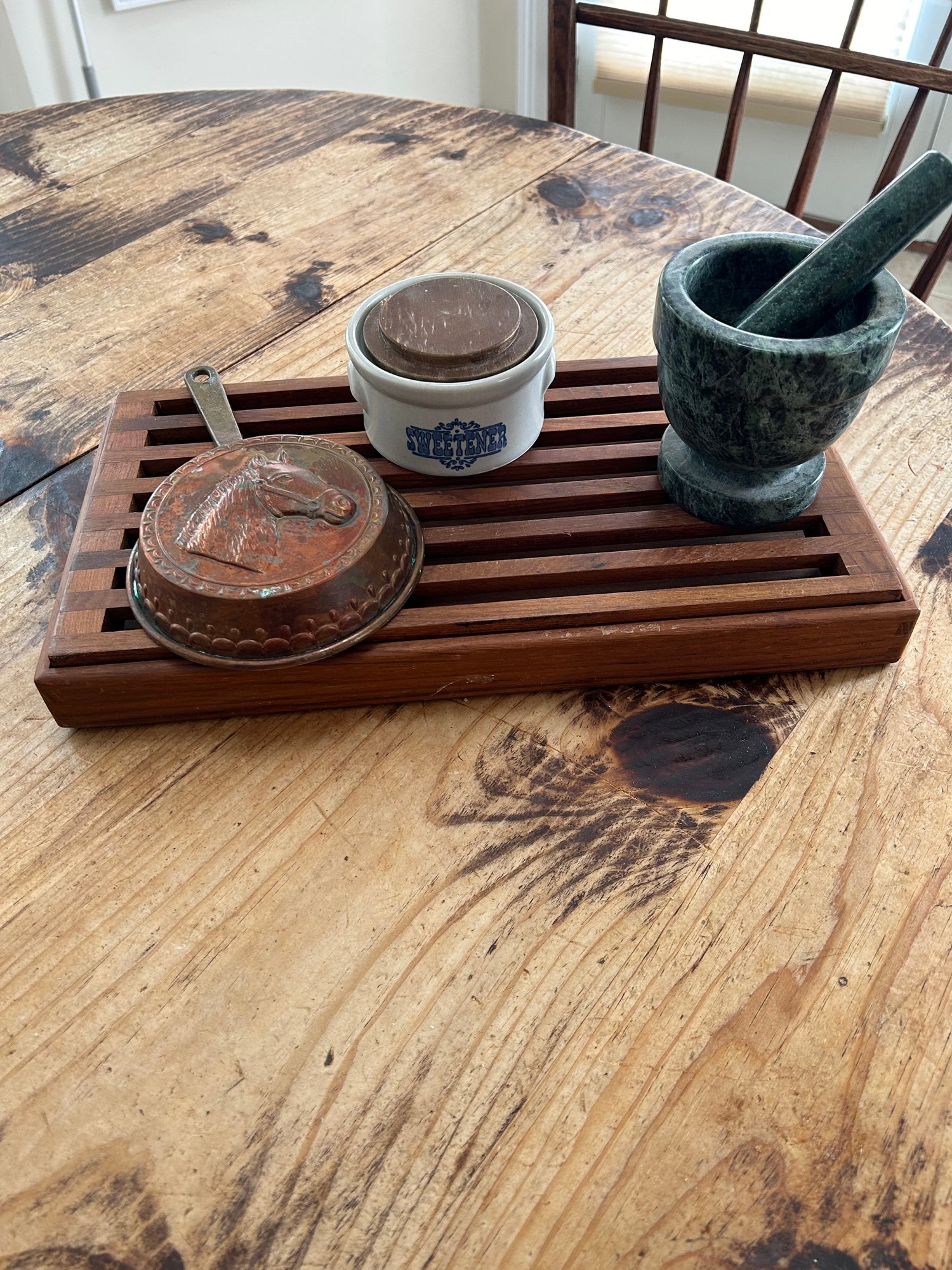 Lot 63-copper Pan With Horse Design, Serving Tray And Pestle And Mortar