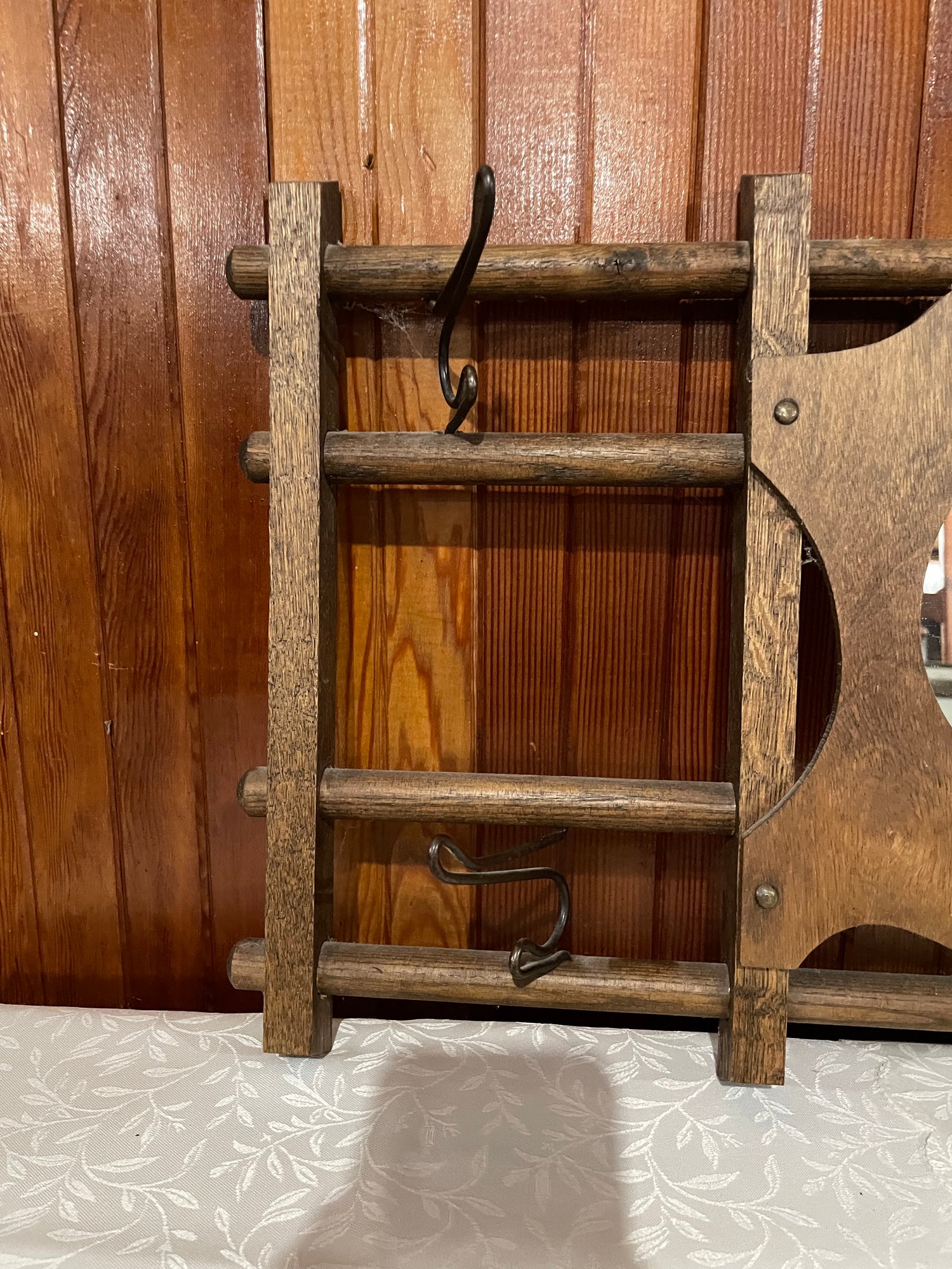 Lot 72-wall Hanging Hat Rack With Round Mirror