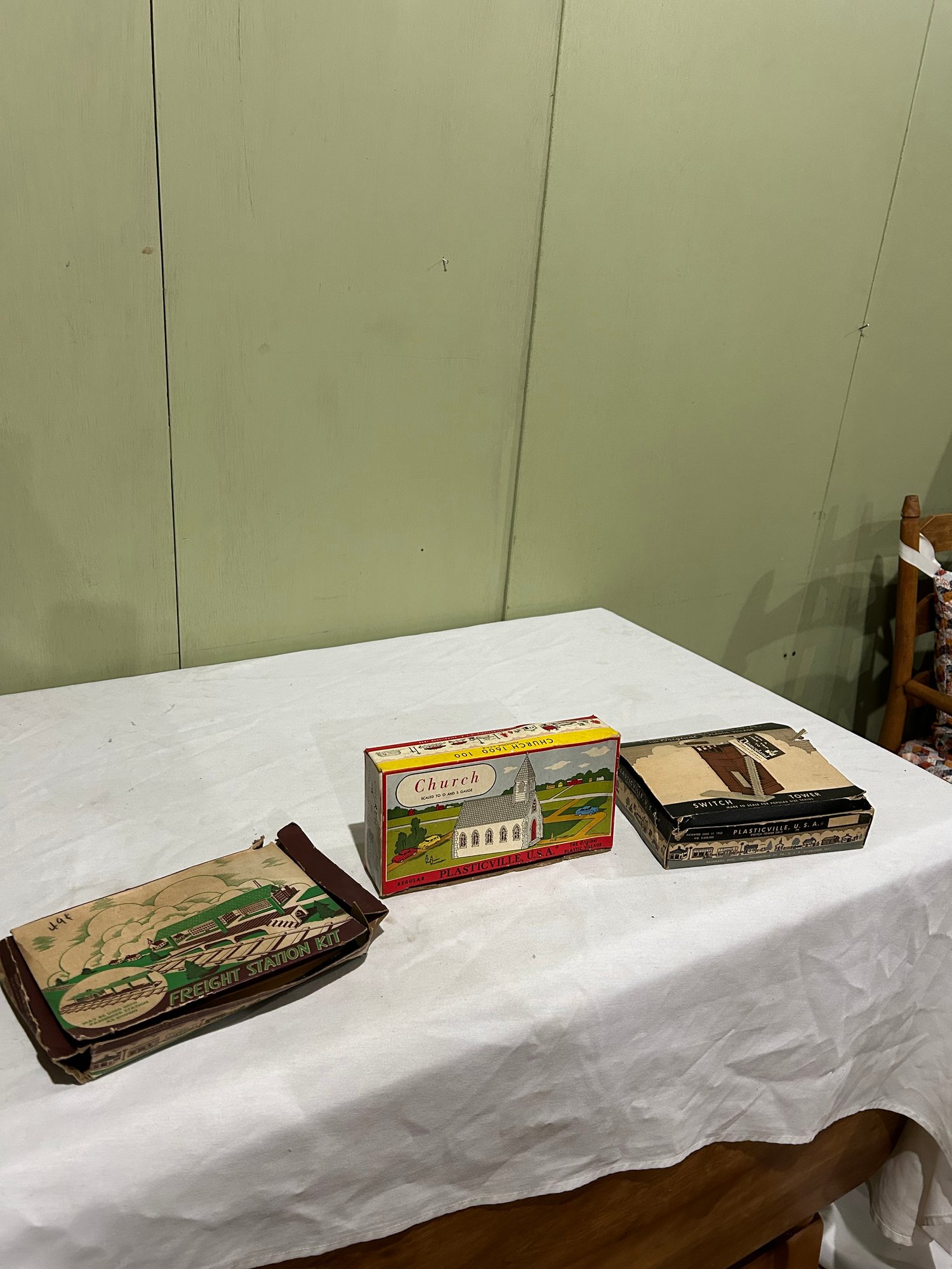 Lot 8 Plasticville Switch Tower, Freight Station Kit LM-3, Snd Church 1600 100