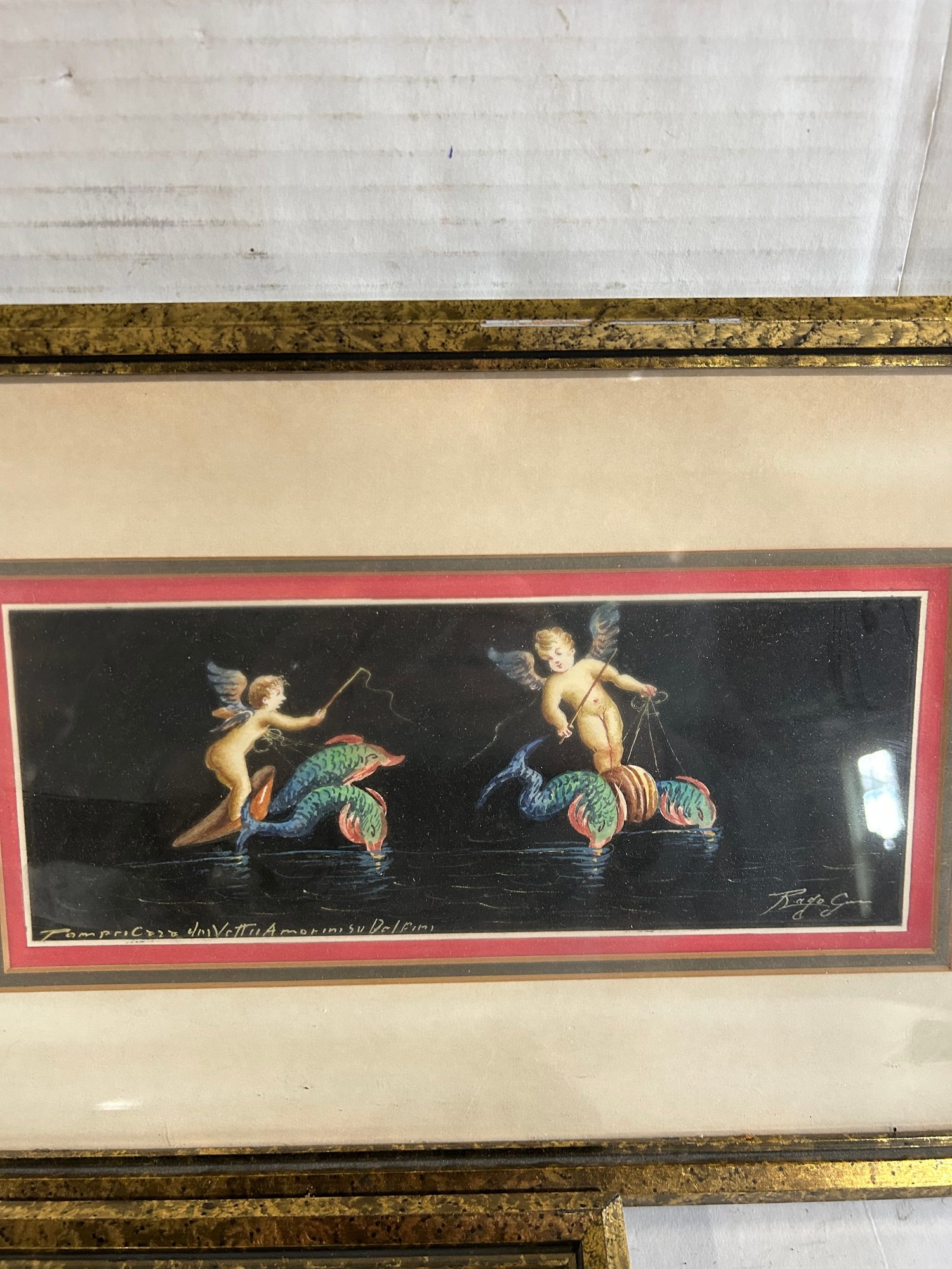 Lot 80- 3 Framed Putti Water Colors. They Are All 16x10