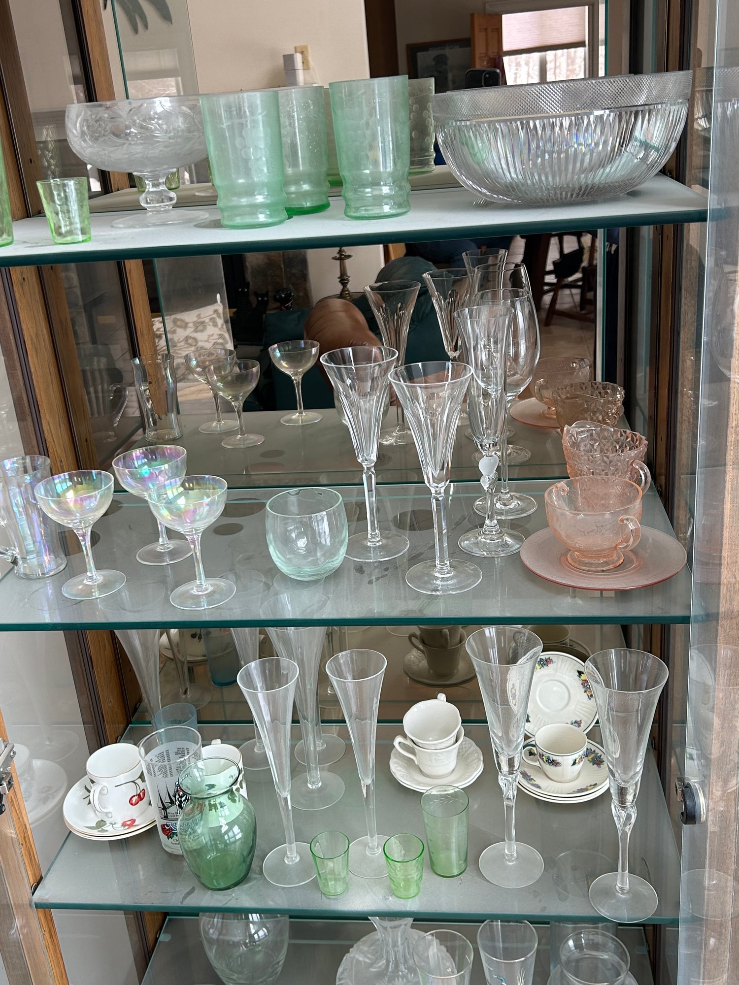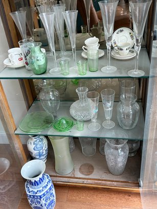 Lot 80-content Of Curio Cabinet, Depression Glass, Uranium Glass, And More