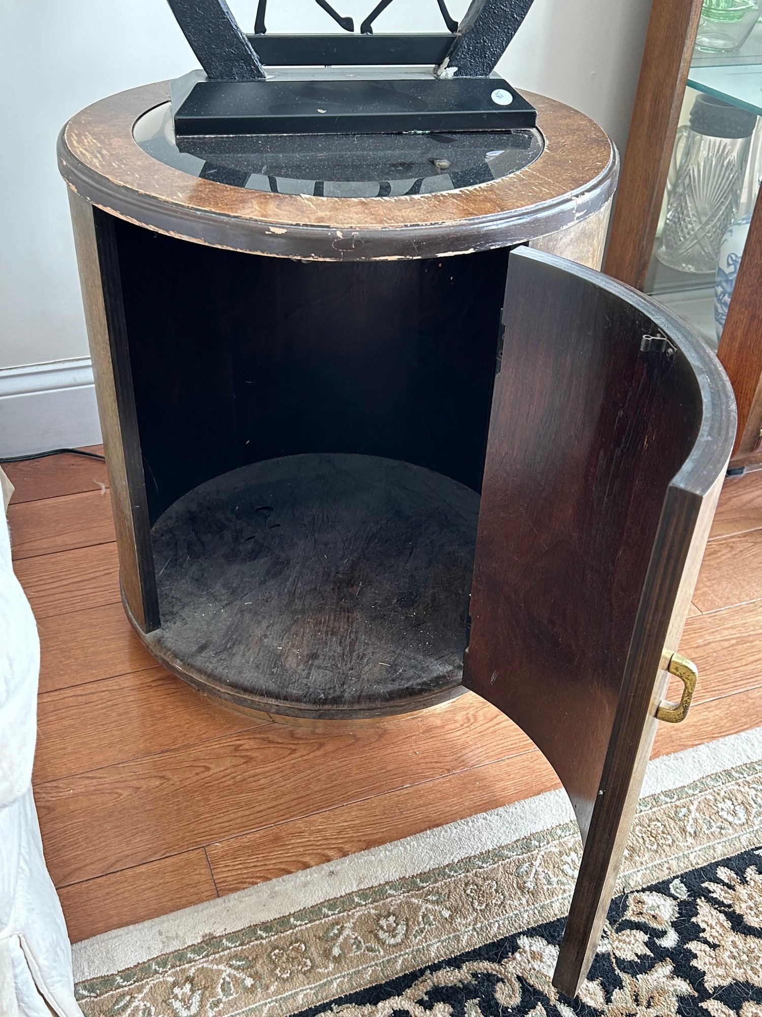 Lot 82-mid Century Round End Table With Glass Top. 22H, 19W