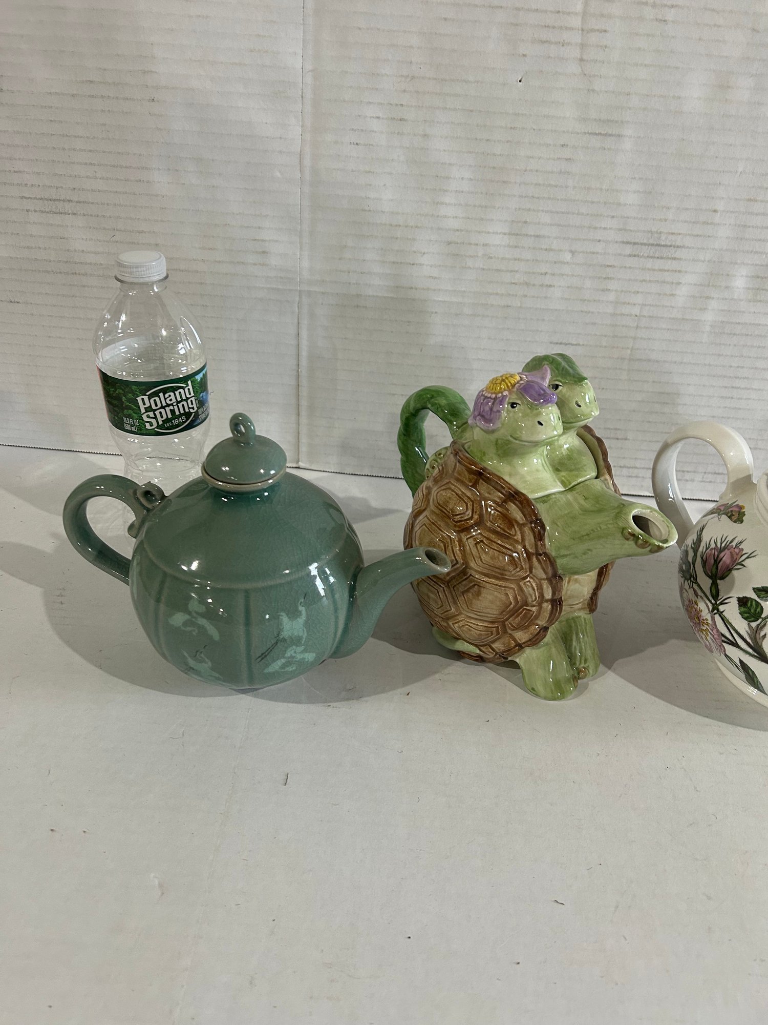 Lot 89- 4 Decorative Teapots. The One With Flowers Is Botanical Garden Collection