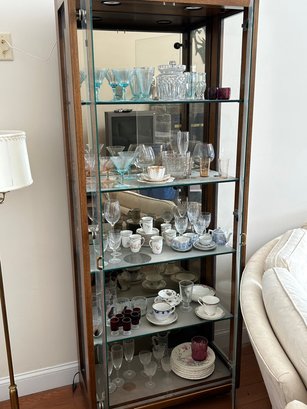 Lot 92- Mid Century Glass Curio Cabinet. No Content. 31W, 811/2H, 15D