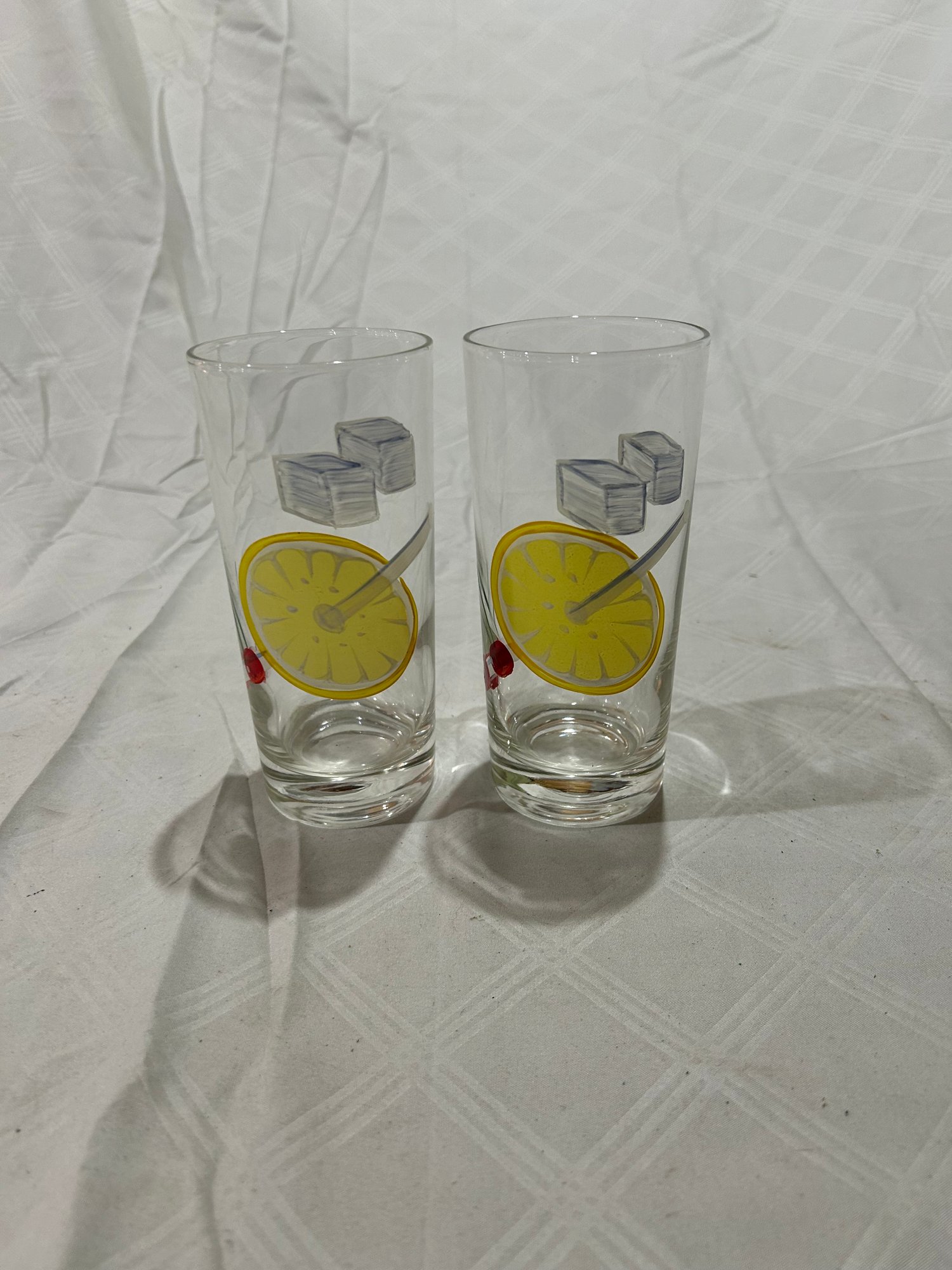 11 painted glasses with Lemon and ice.