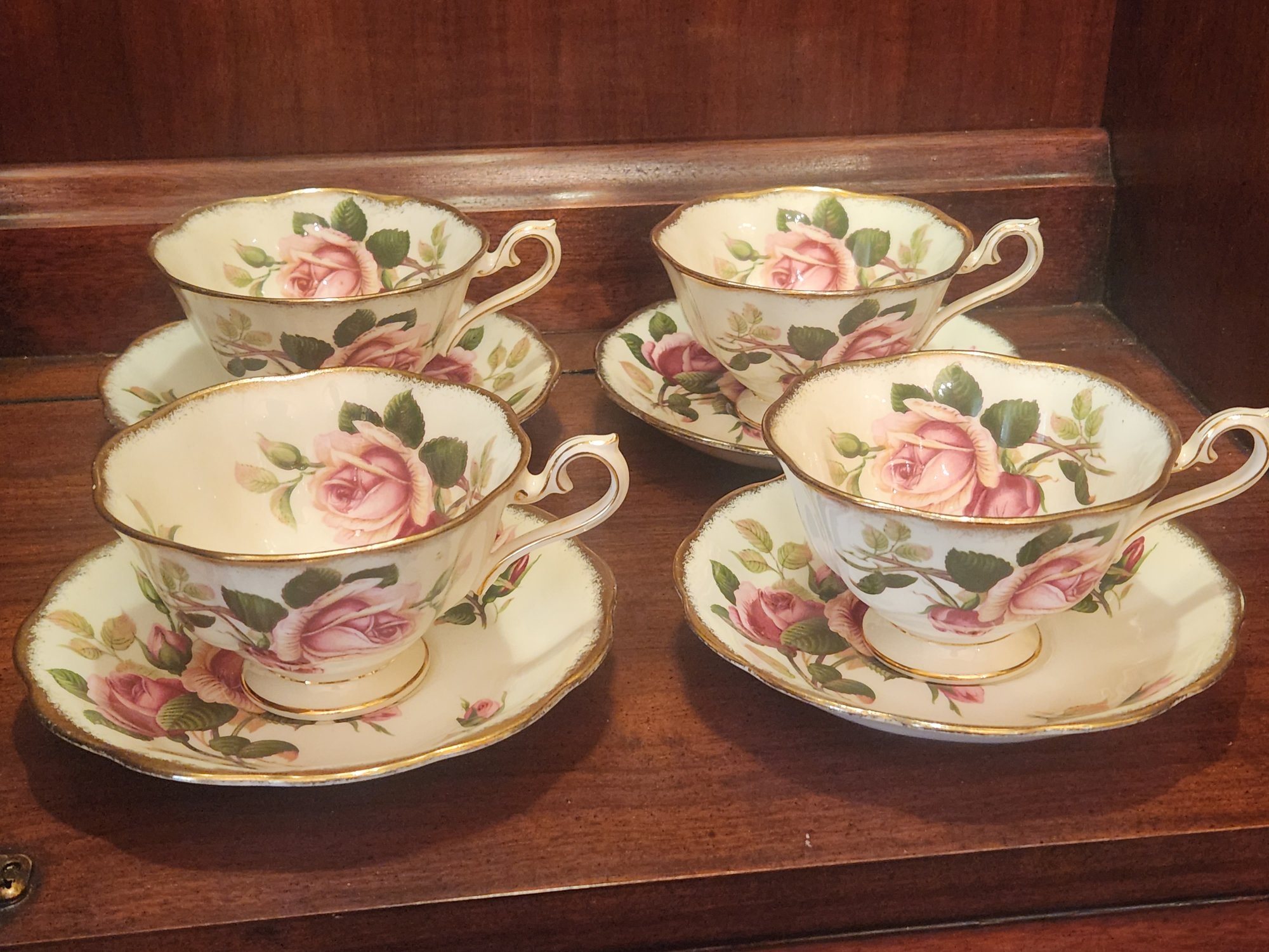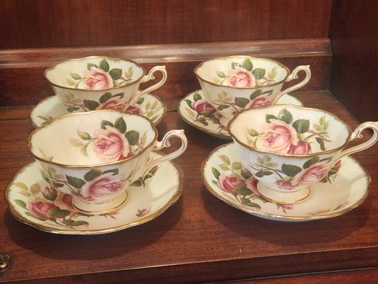 4 Royal Albert "Anniversary Rose" cups and saucers