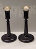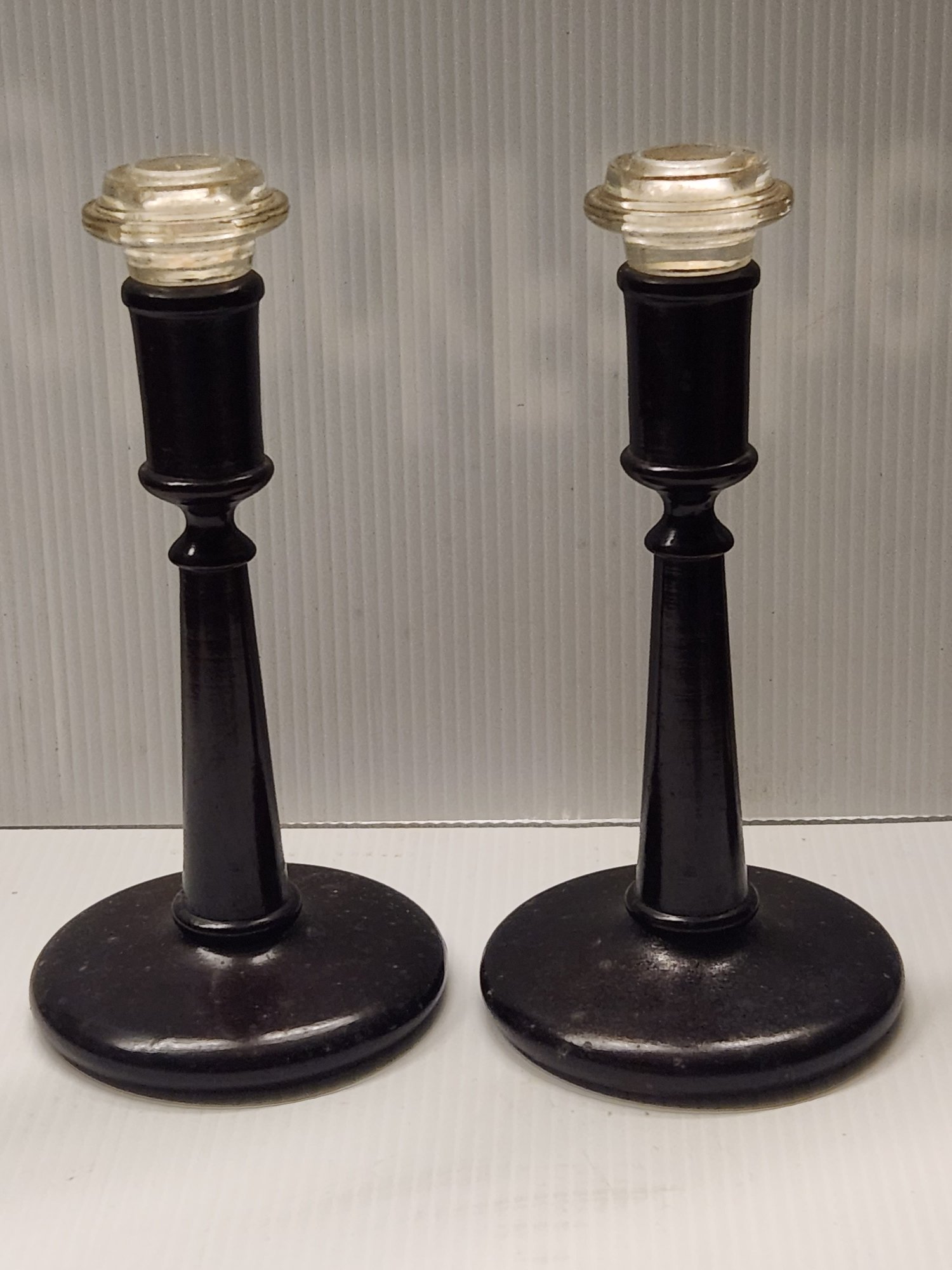 Pair of mahogany and glass candle sticks
