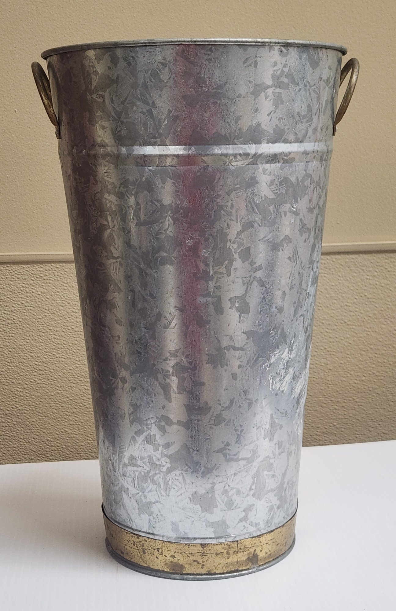 Galvanized flower paie with brass band