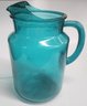 Anchor Hocking teal glass lemonade pitcher with ice lip