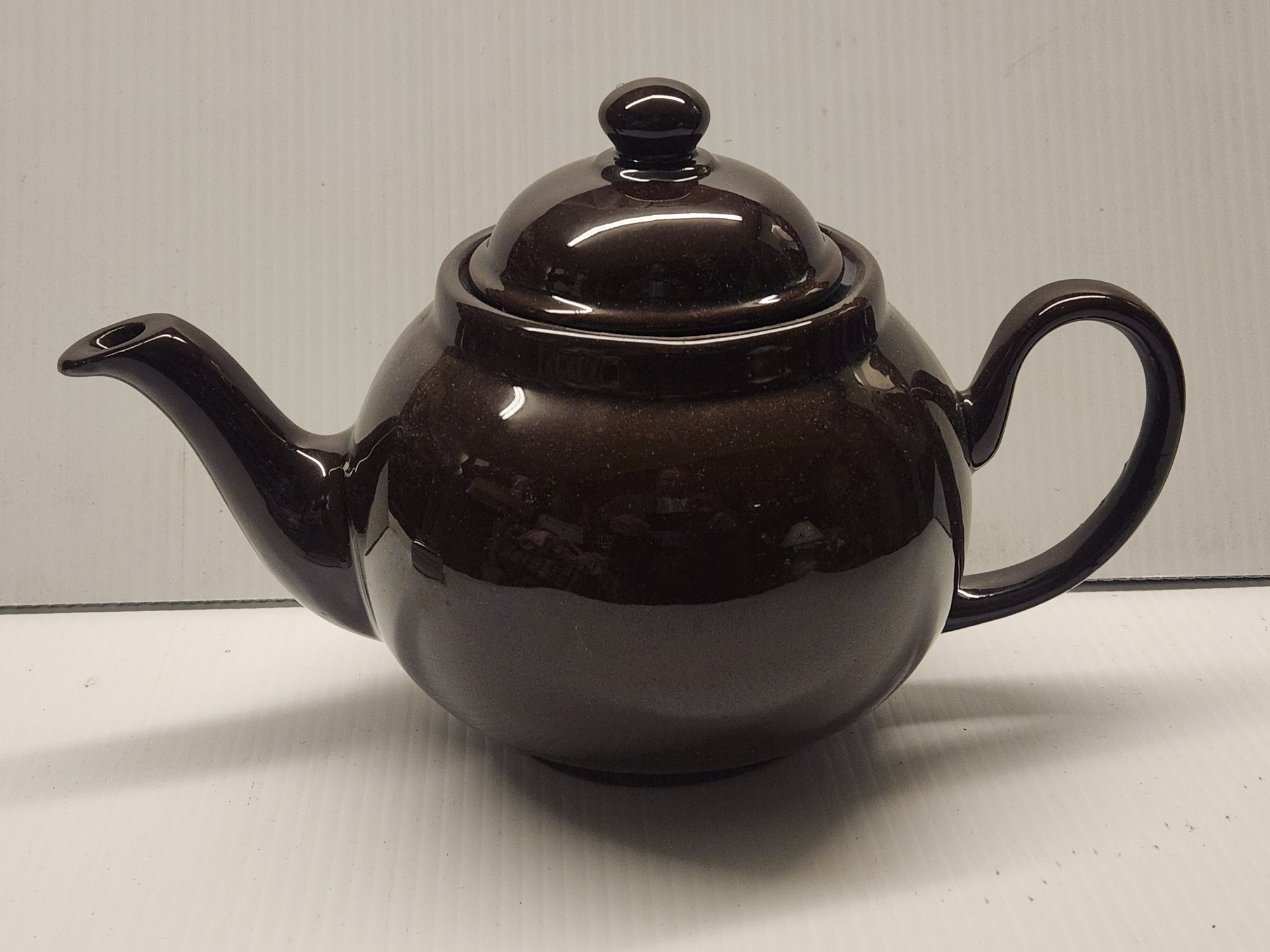 Brown glazed English redware teapot