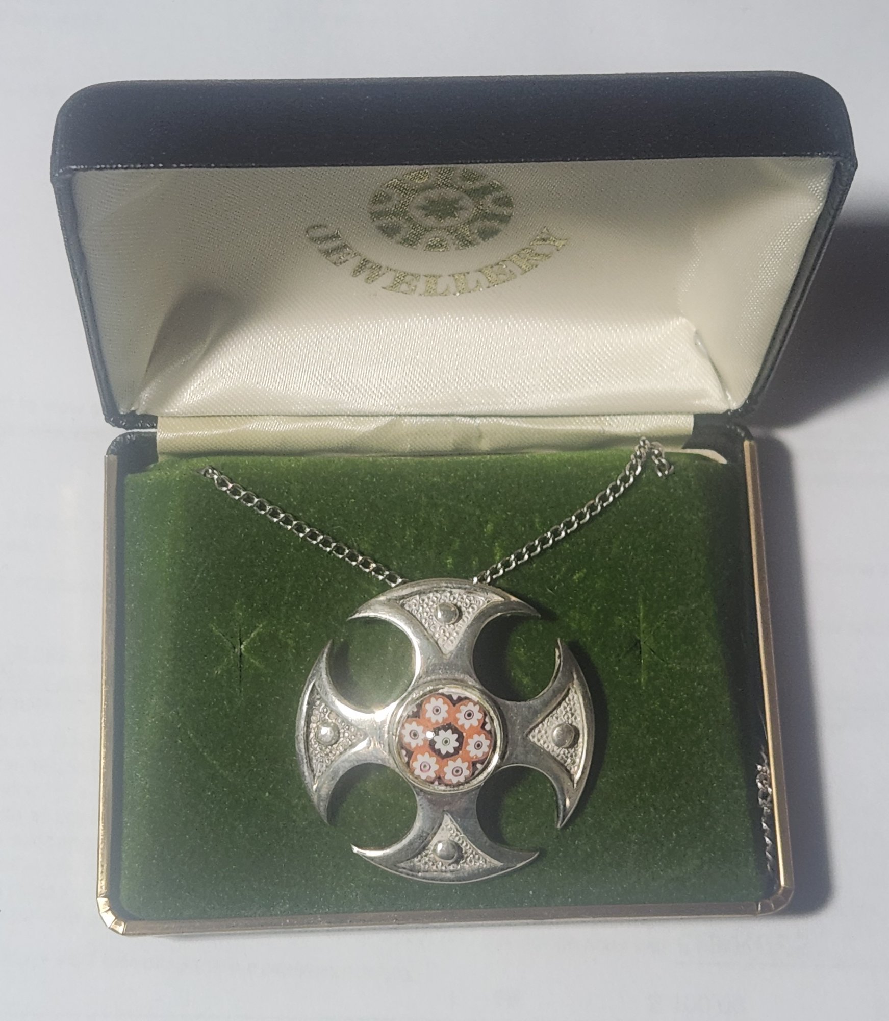 Caithness modernist pewter pendant with millifiori center