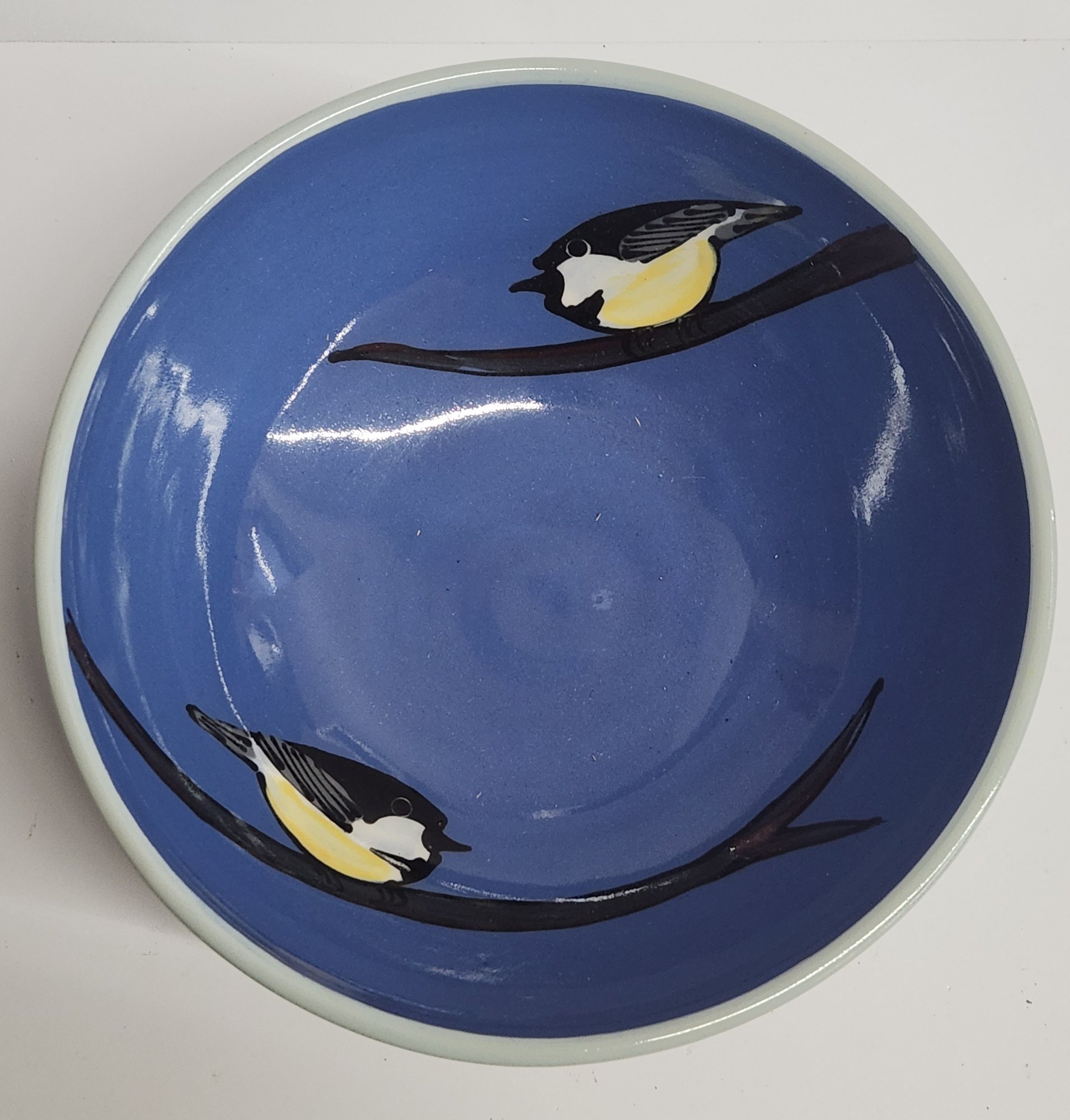 Chickadee decorated Lacey studio pottery bowl