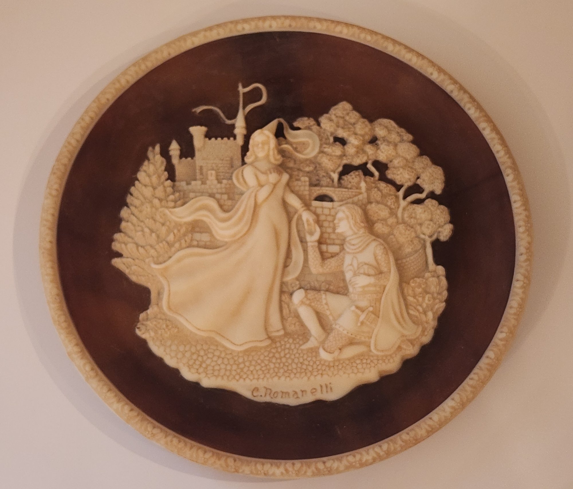 Incolay Stone limited edition plate/ wall plaque Lancelot and Guenevere