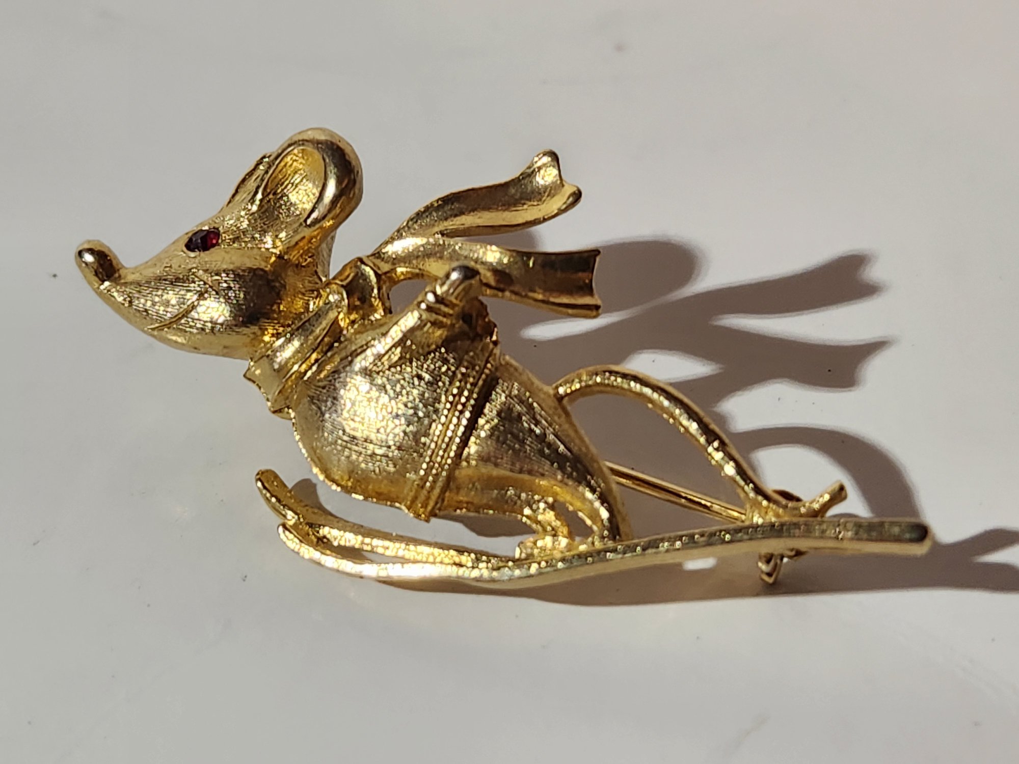 Pin depicting mouse skiing