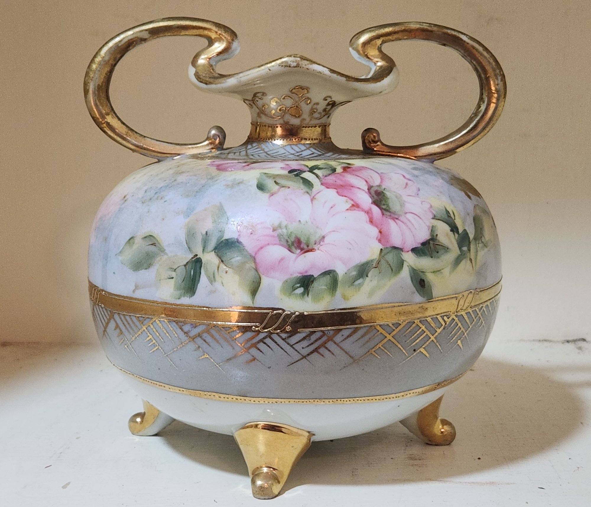 Forded to handled hand painted nippon porcelain vase