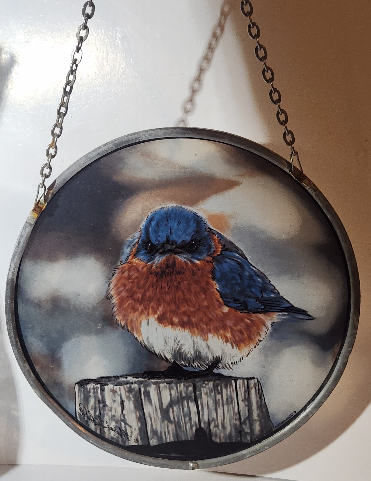 Glass Masters suncatcher with a blue bird
