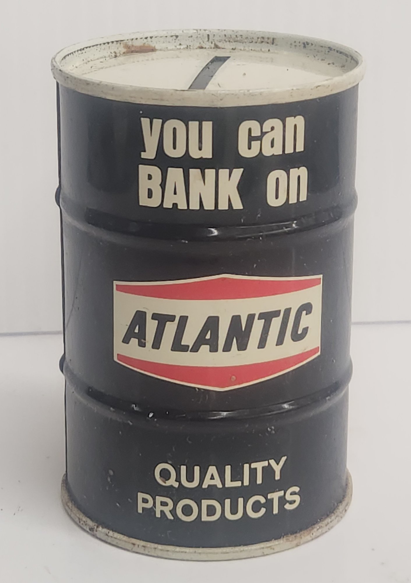 Old stock Atlantic sample oil can bank