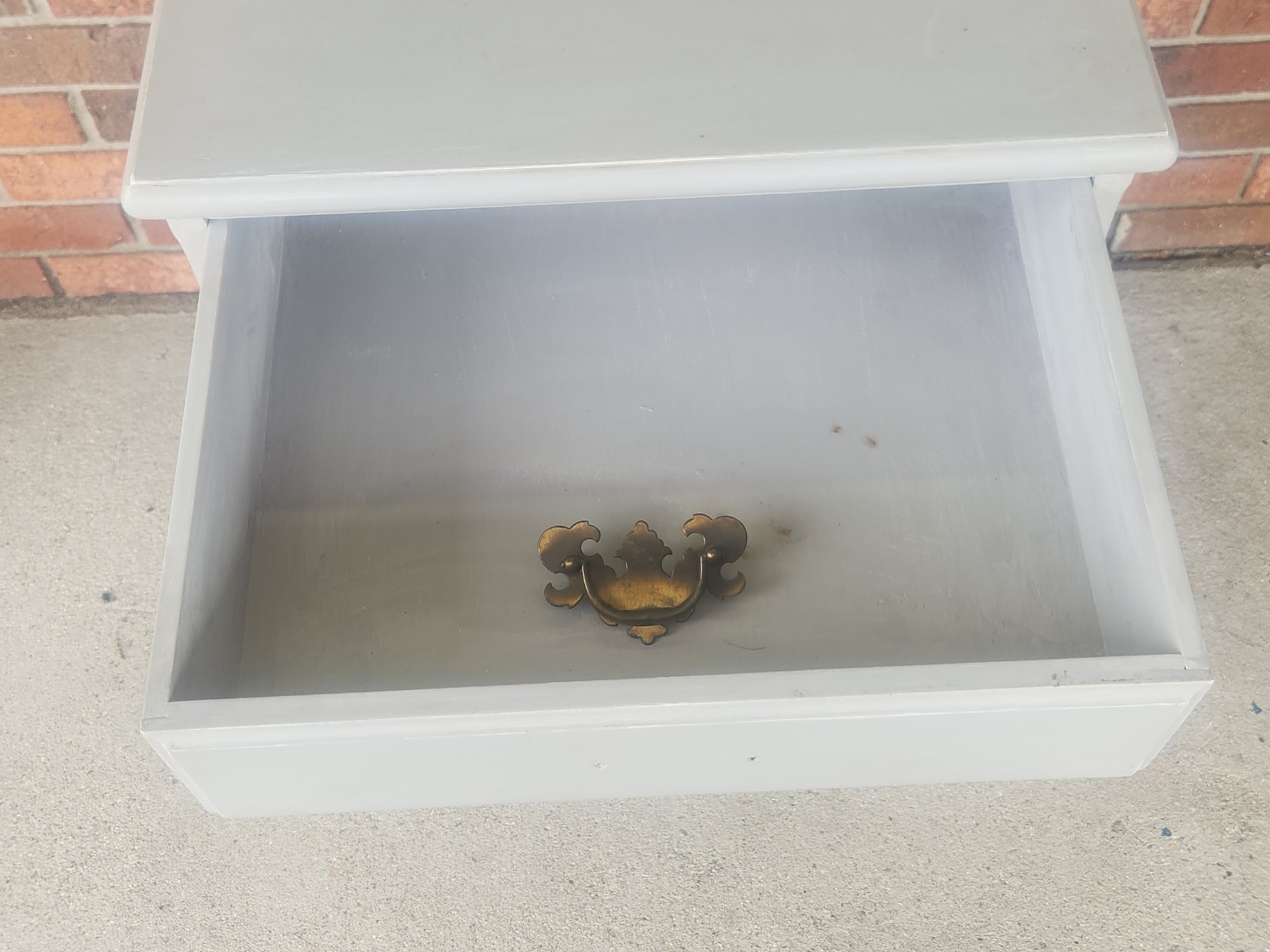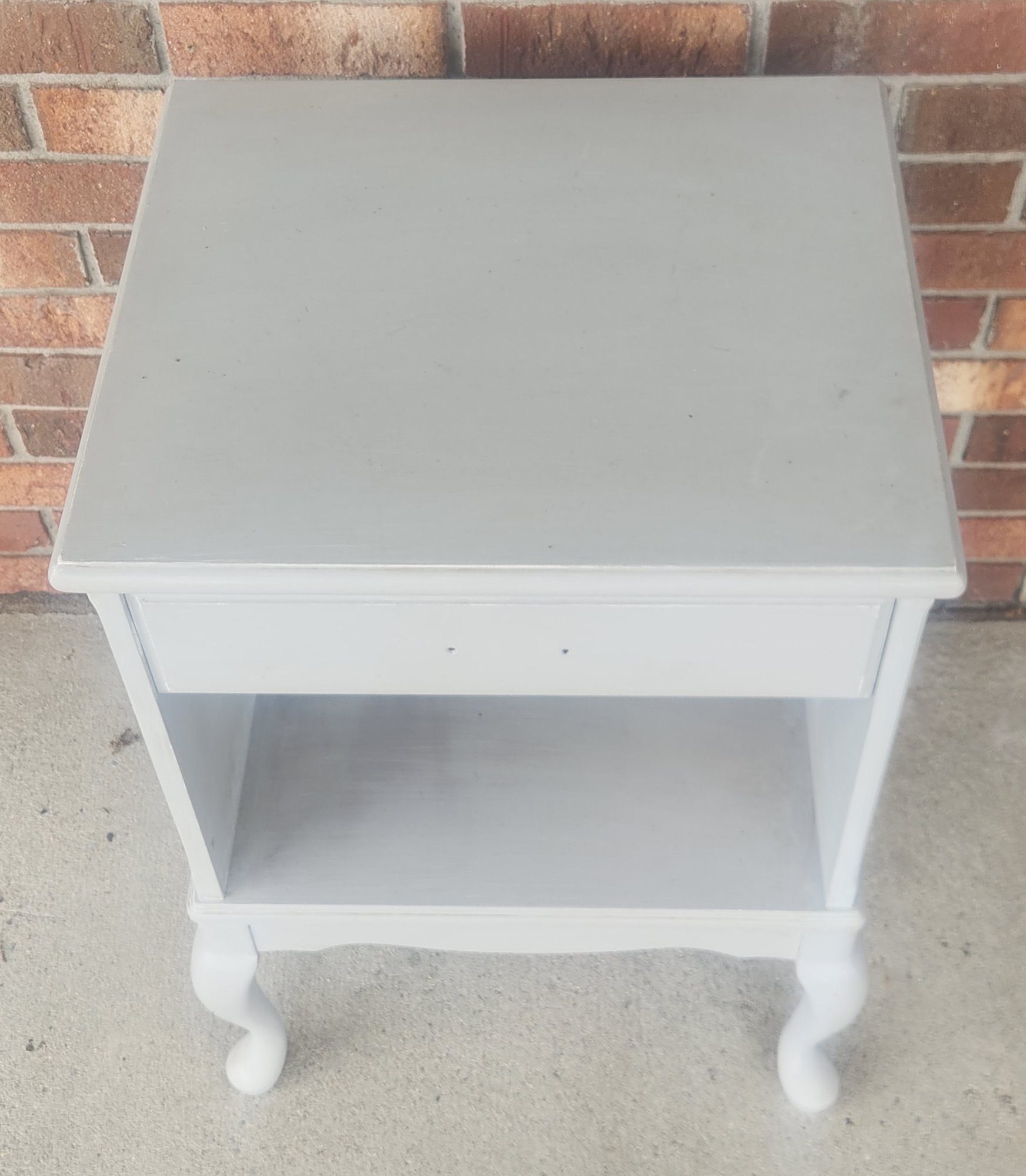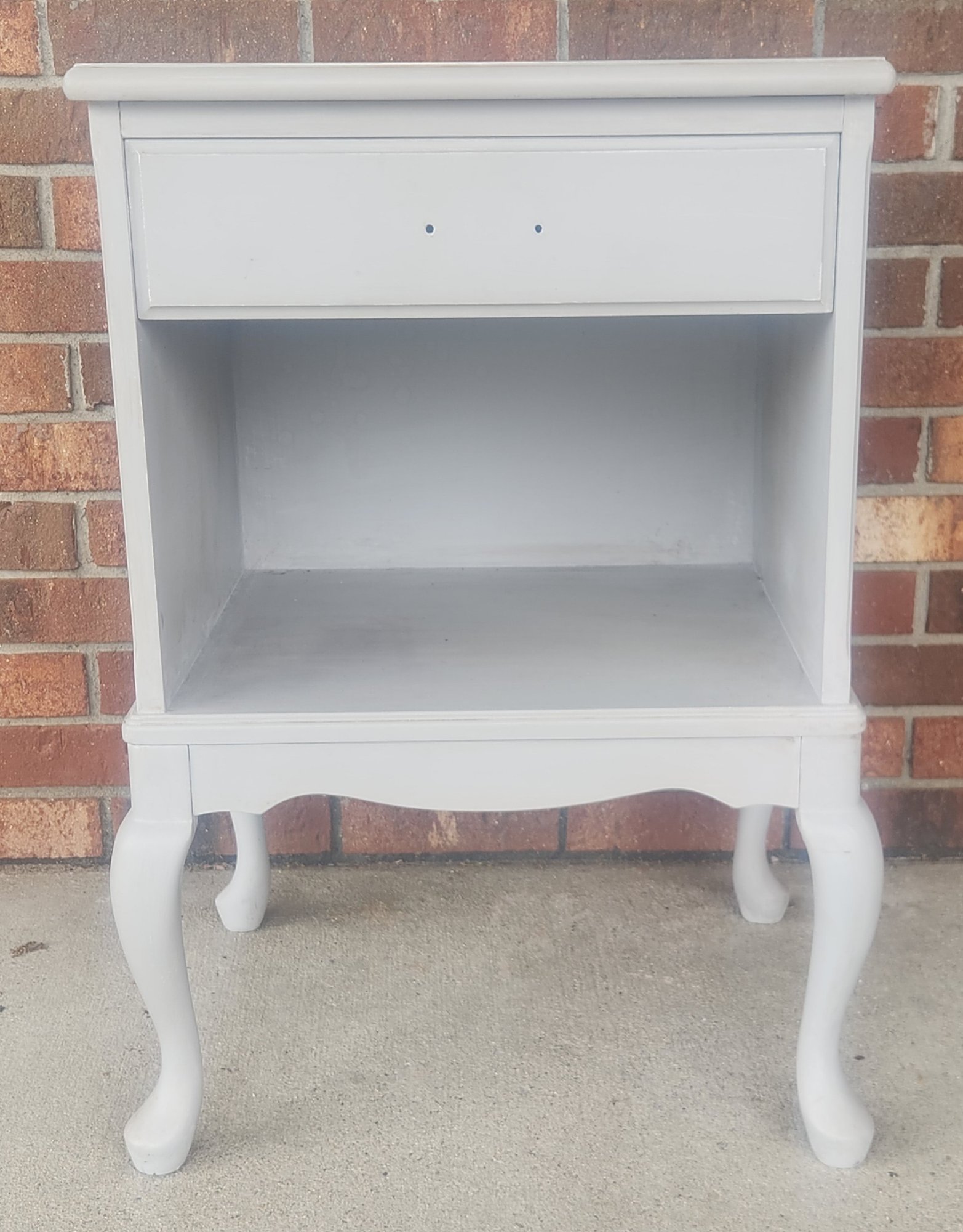Gray painted queen ann style one drawer stand