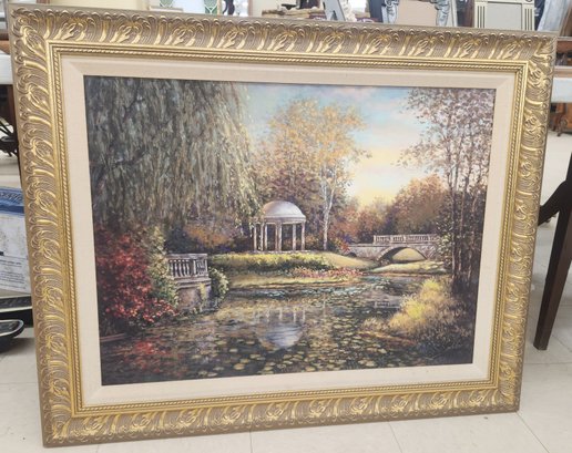 Signed oil lpainting on board of spring in park