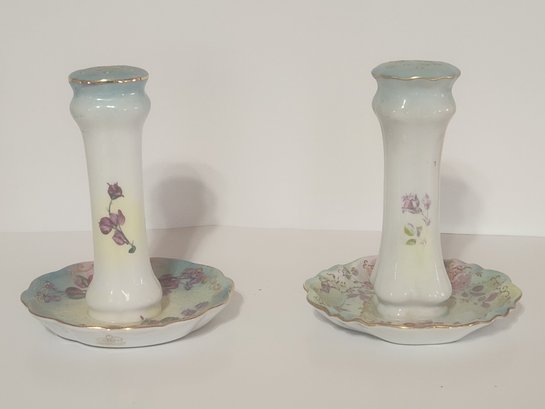 Two floral decorated porcelain hat pin holders