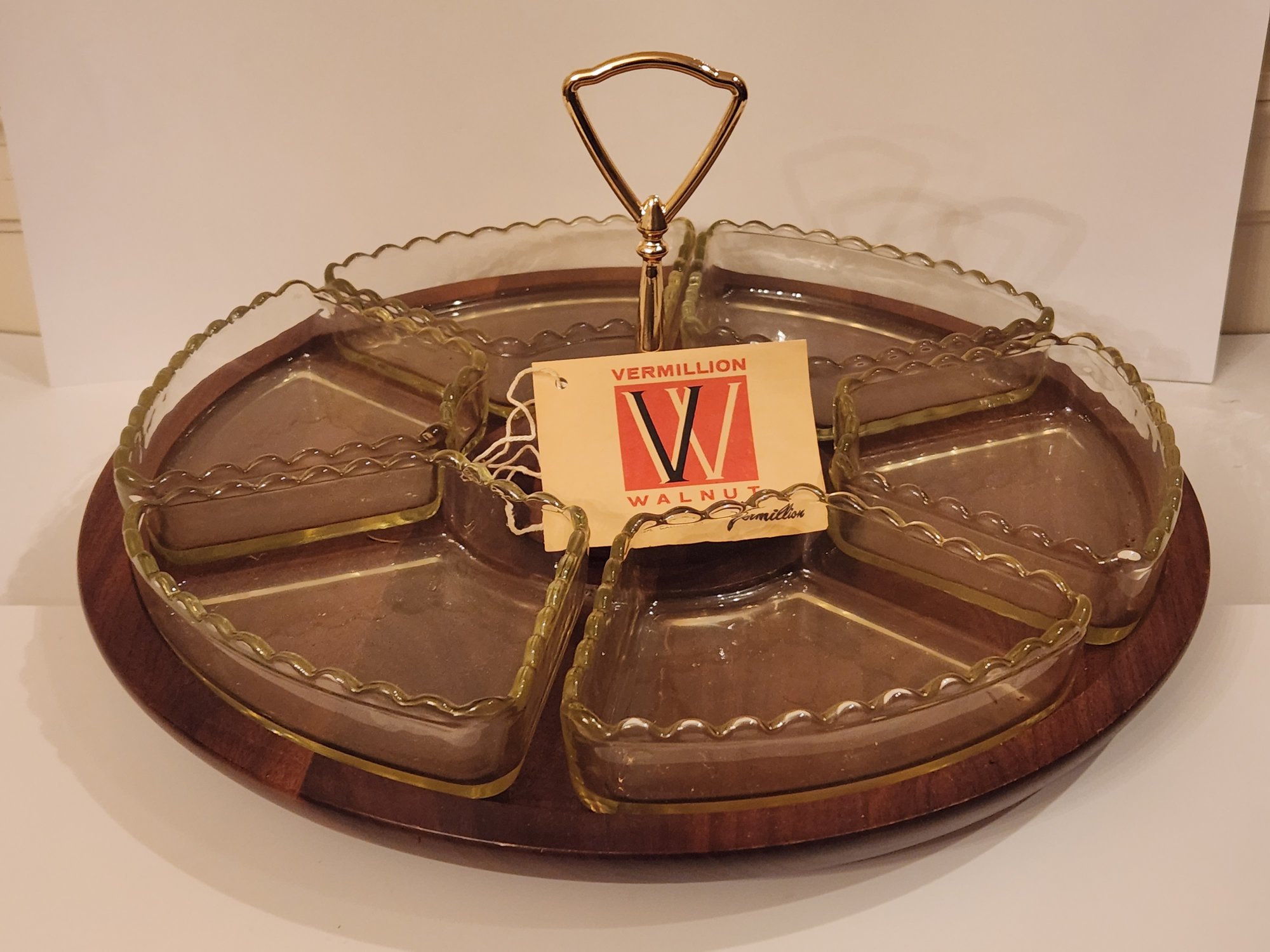 Vermillion mid century lwalnut azy susan condiment tray