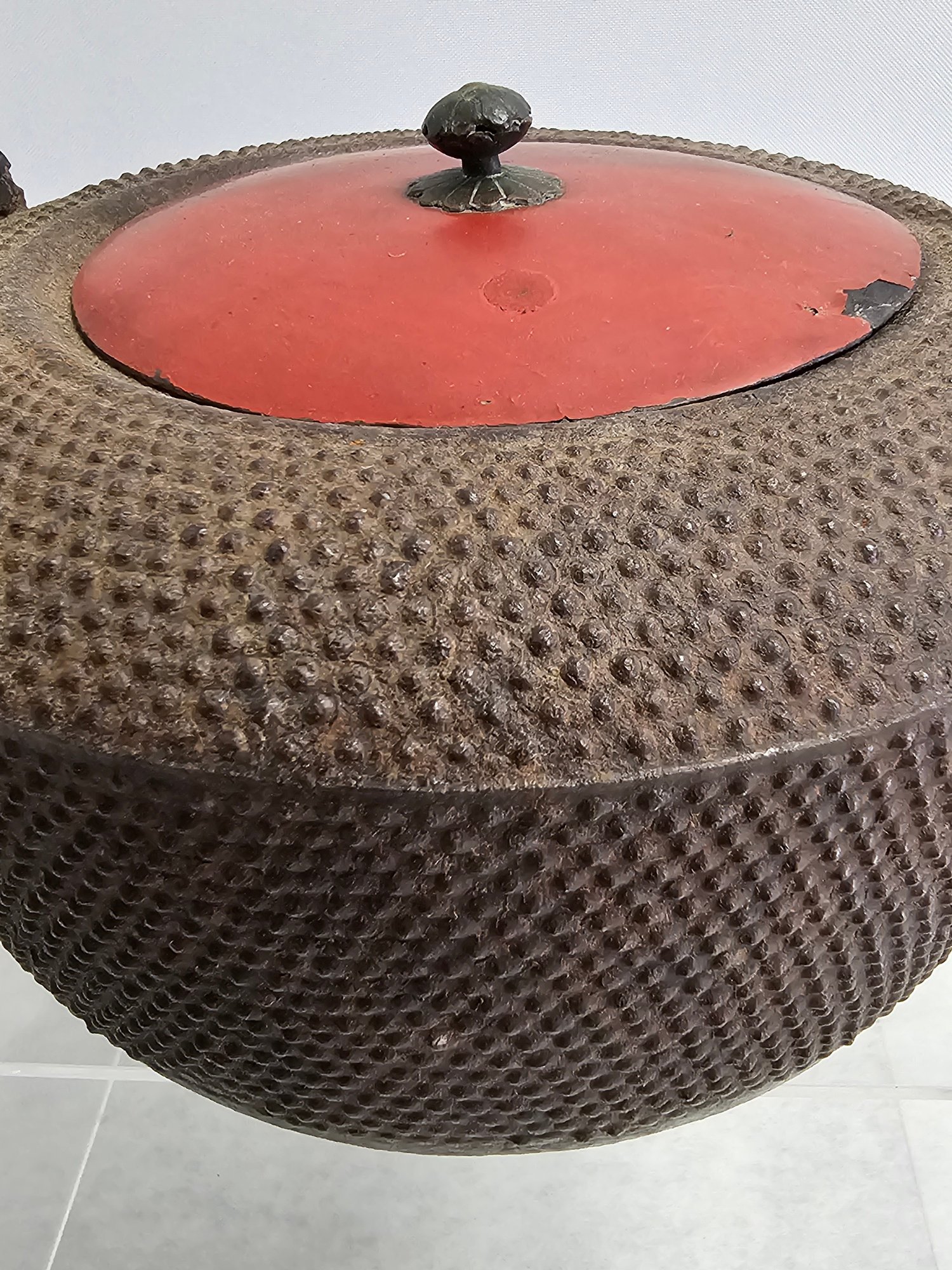 Antique, Japanese Tetsubin, Iron Kettle With Original Lacquered Lid