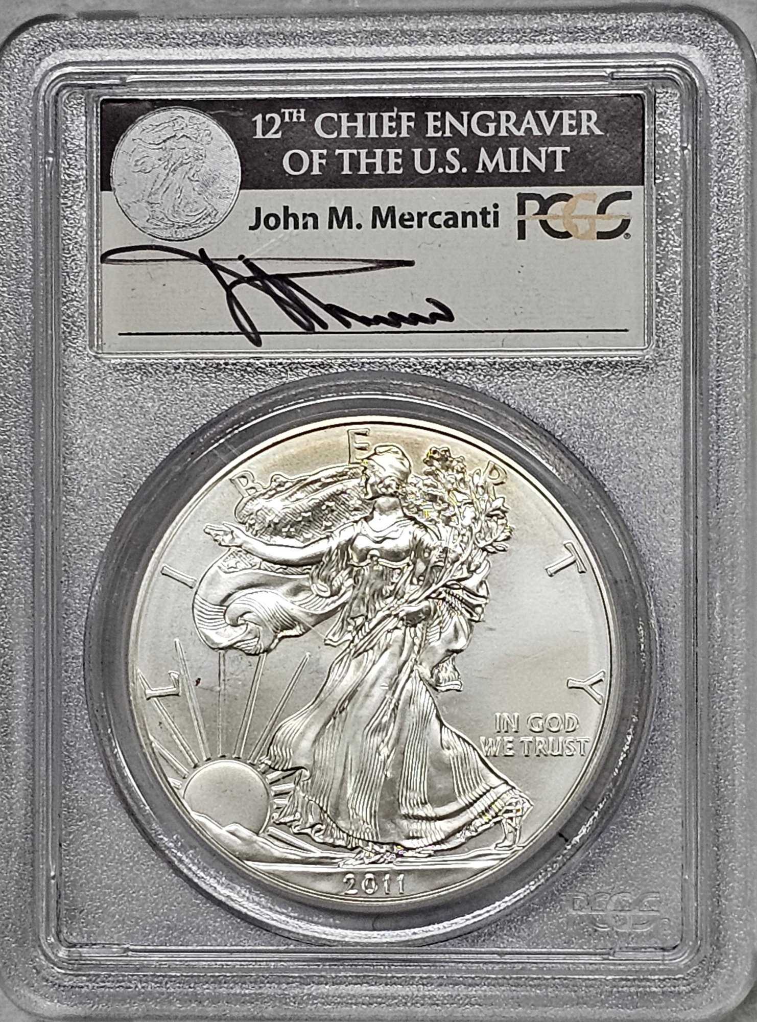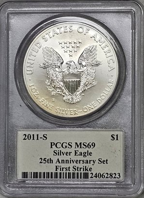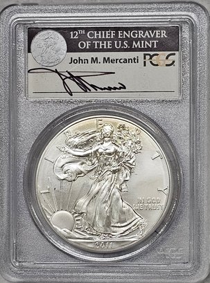 PCGS MS69 First Strike Silver Eagle $1, One Oz. 2011-S, John Mercanti Signed
