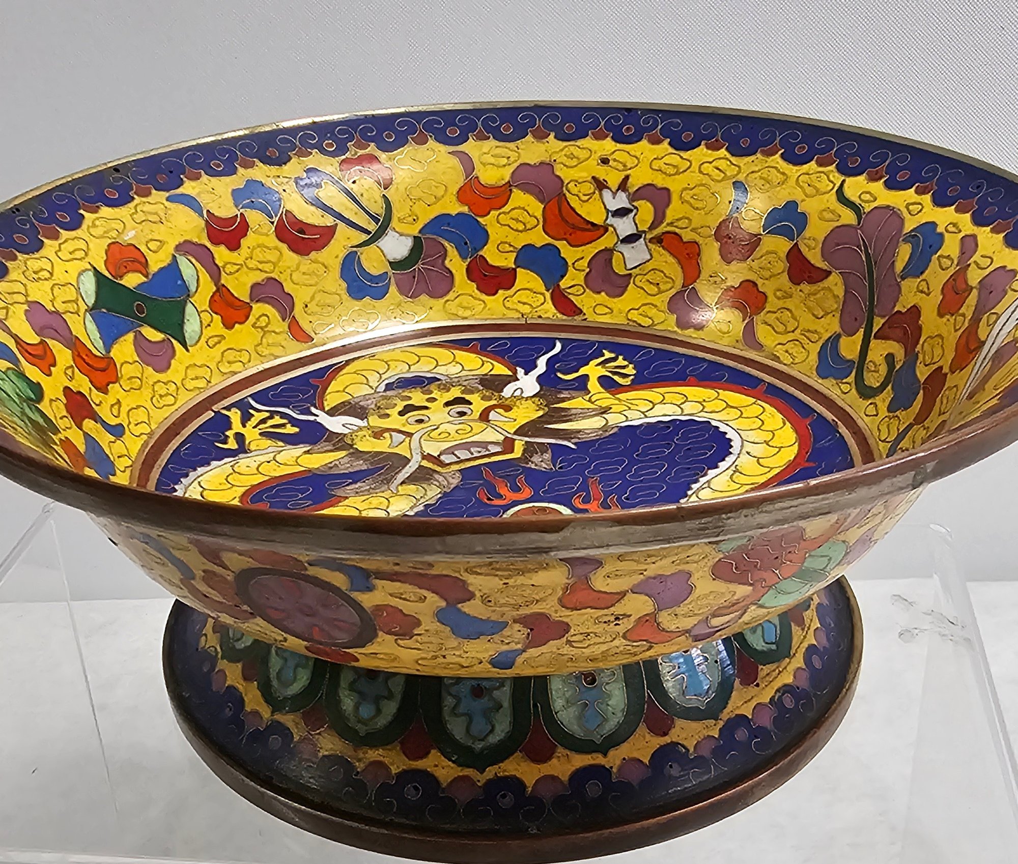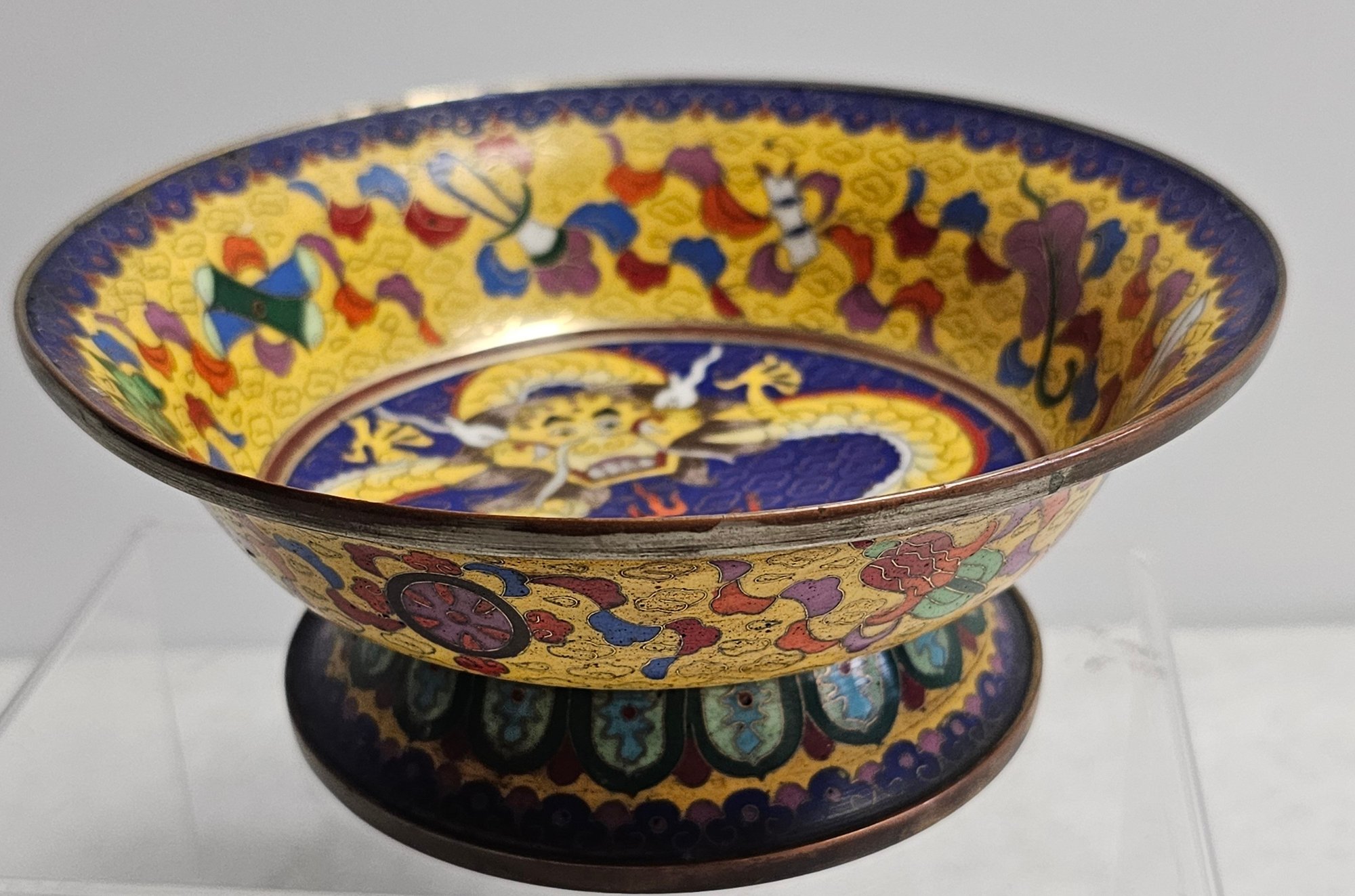 Chinese Cloisonne Dragon Bowl In Excellent Condition And Color