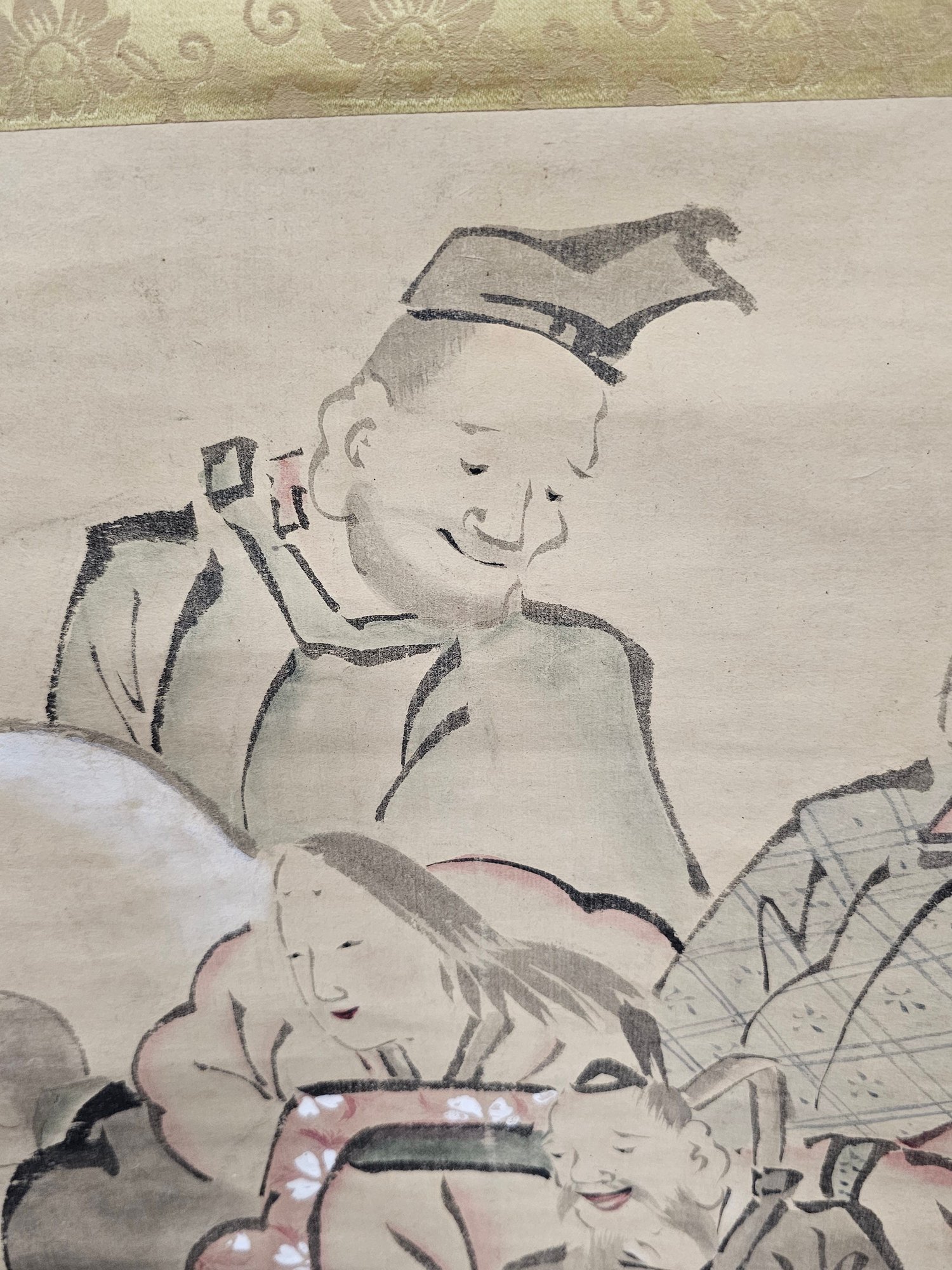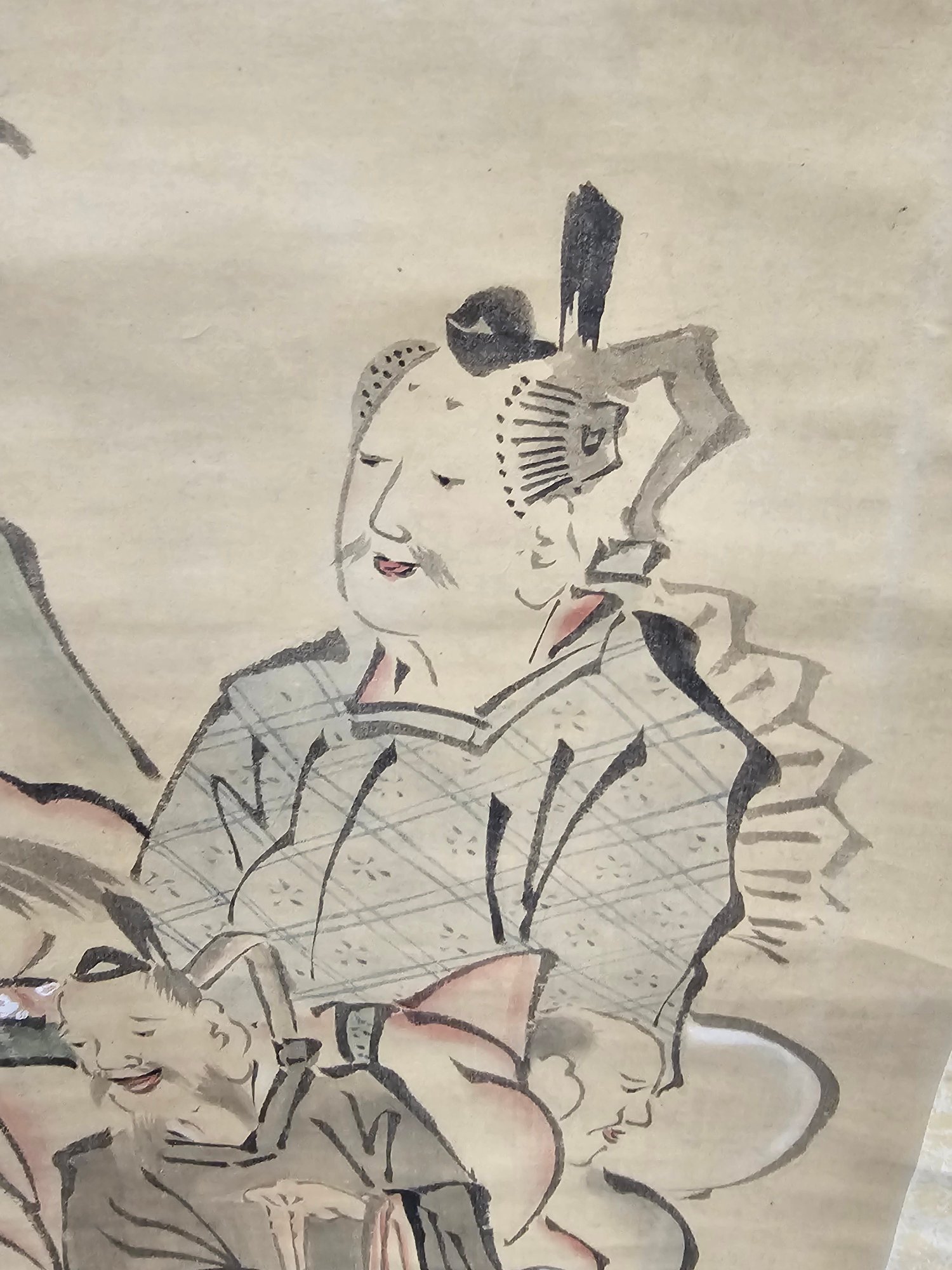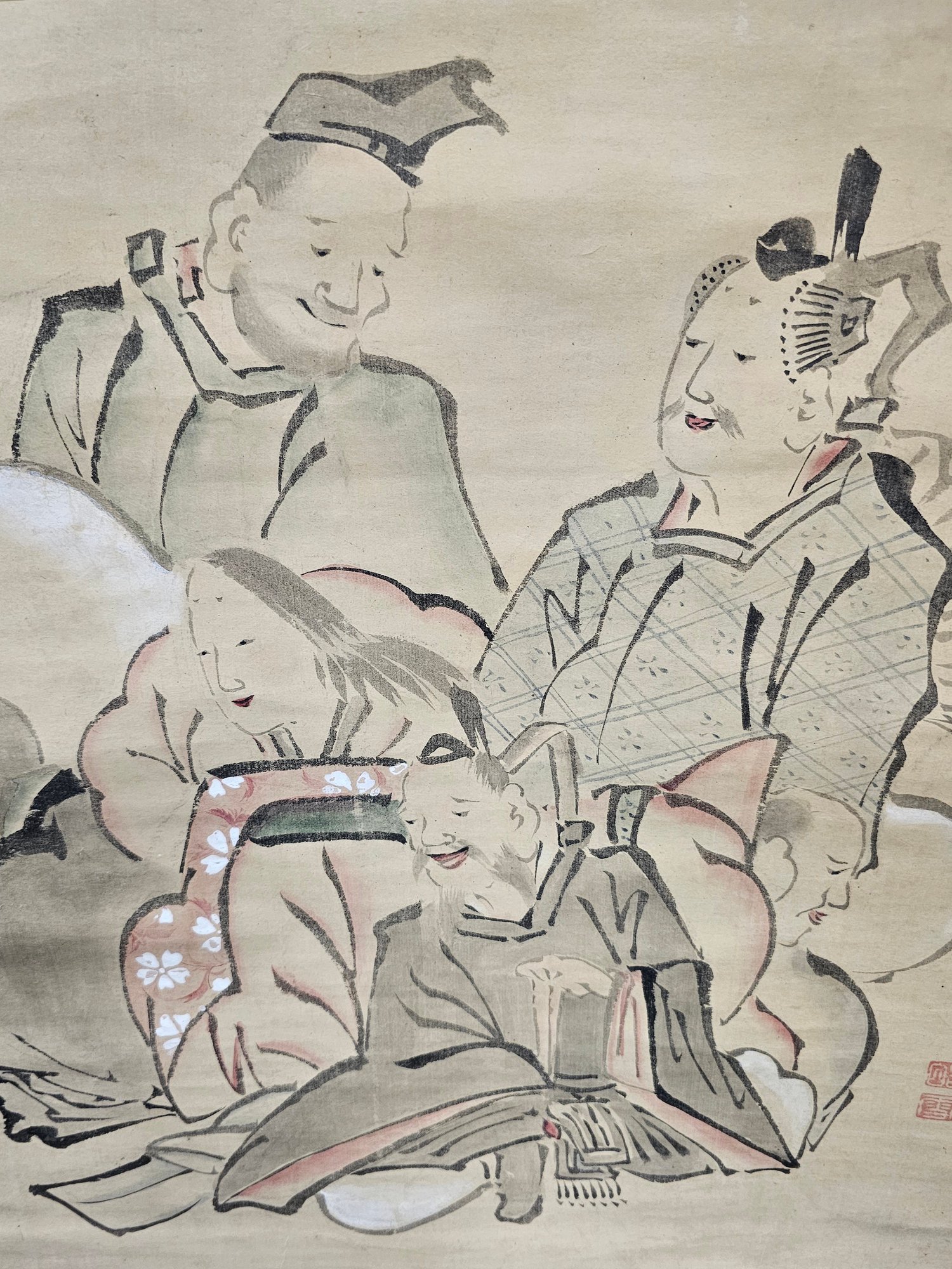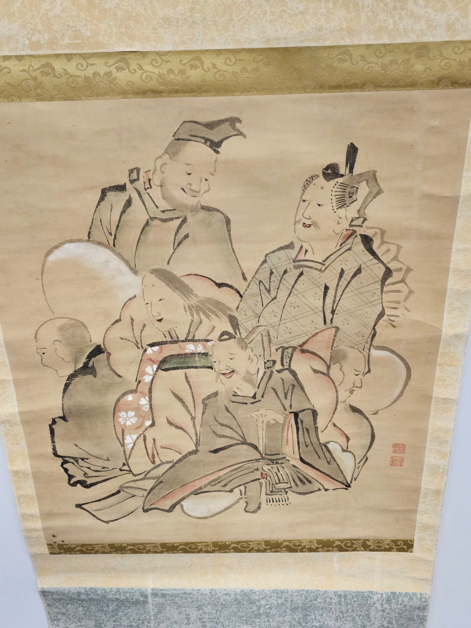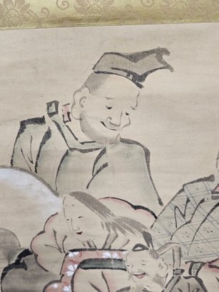 Signed, Japanese Scroll Painting Of The Immortals 20" X 51"