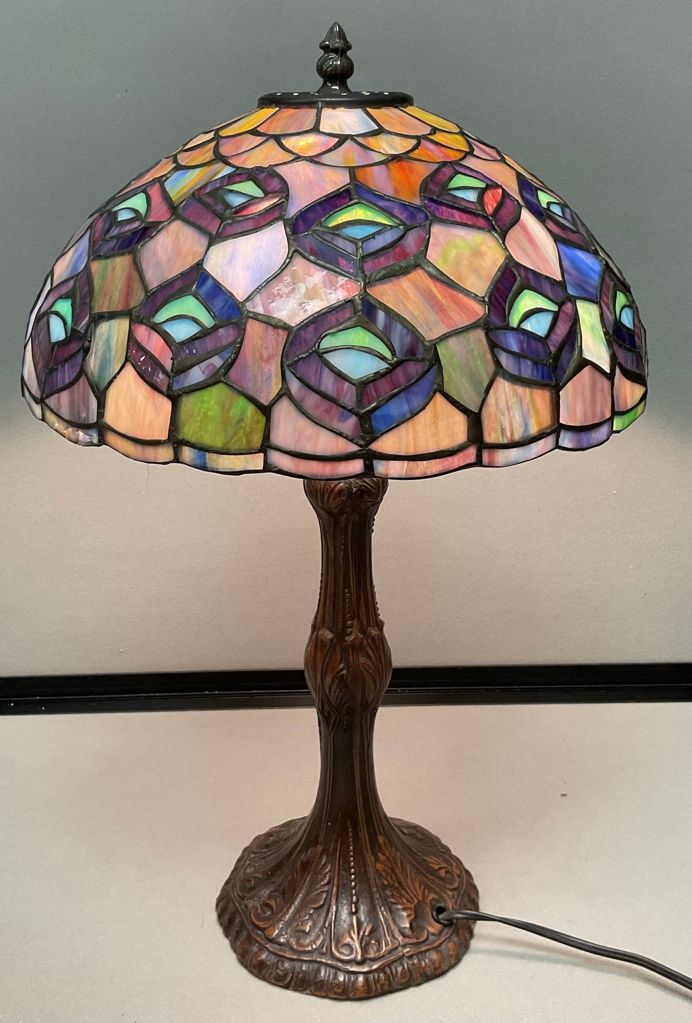 #1 - Tiffany Style Stained Glass Lamp - 20” tall - shade 12” round - some damage to rim as seen in the photos - good used condition
