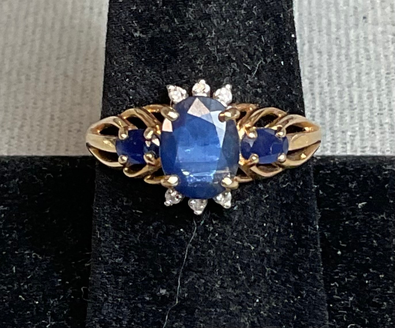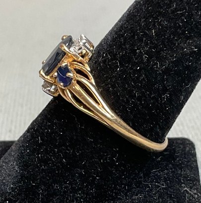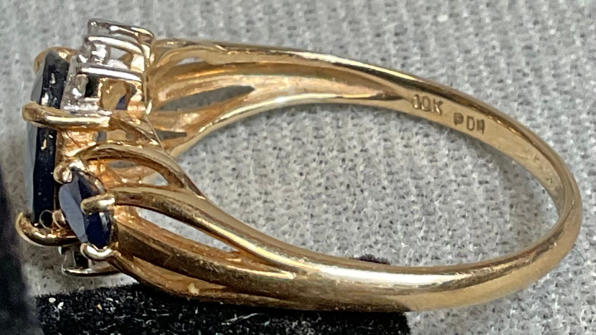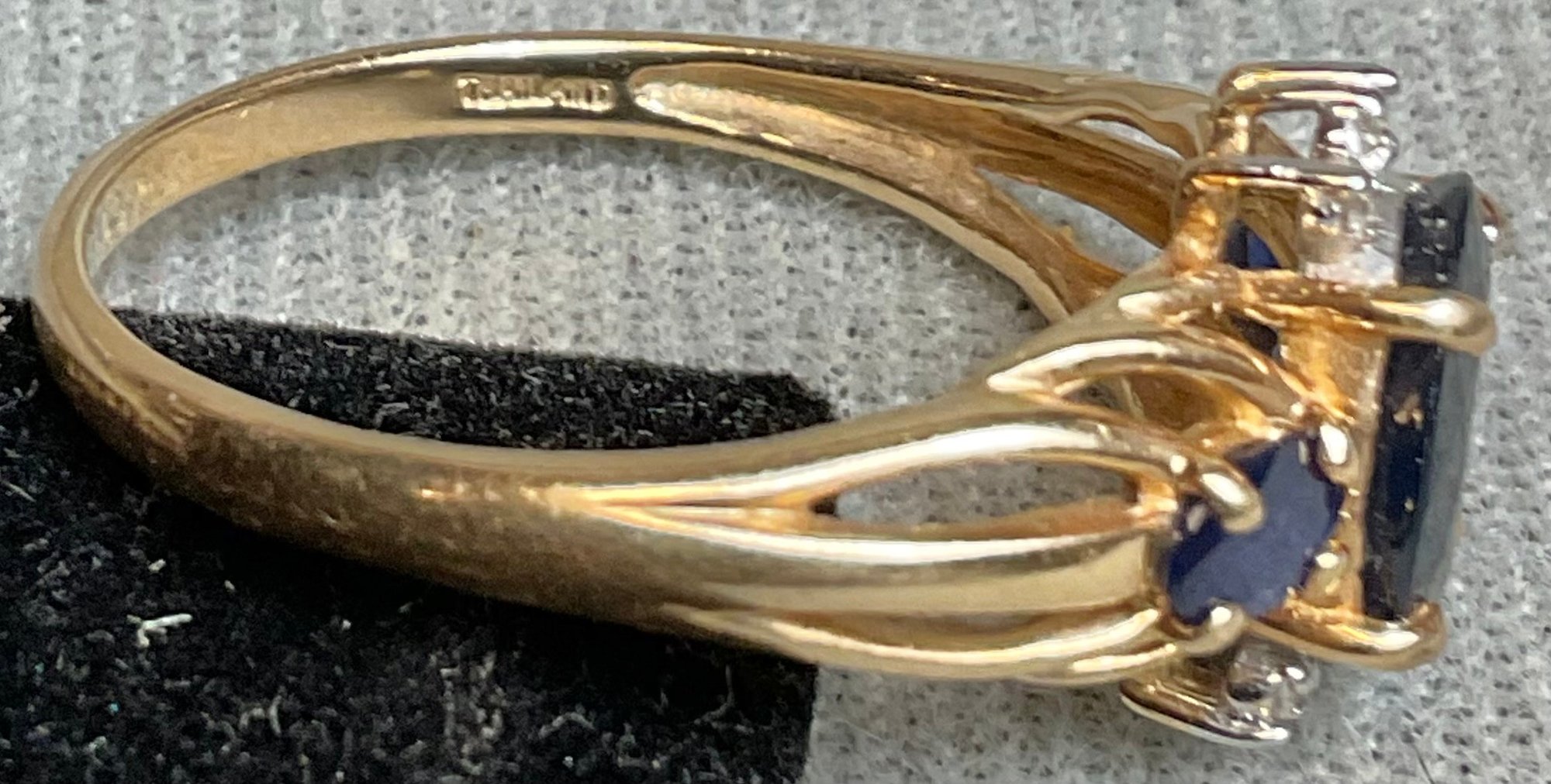 10k Gold Sapphire & Diamond Ring - PDN Thailand - size 9.5 - weighs 3.1 grams - good used condition