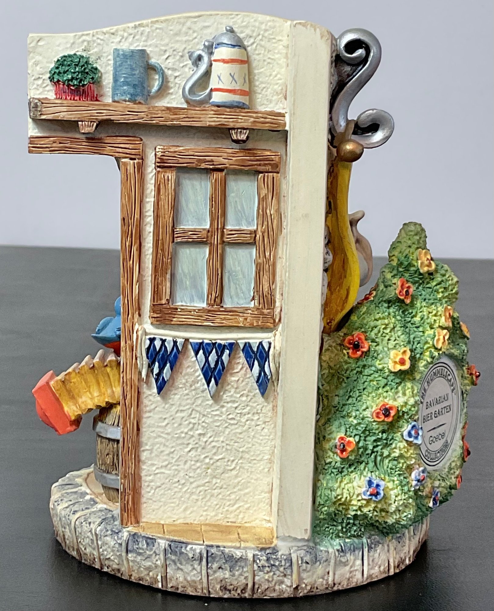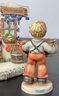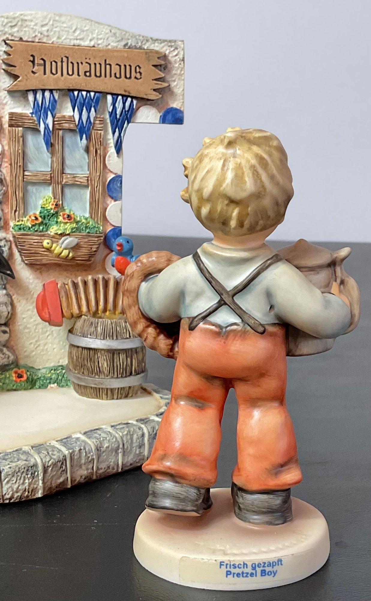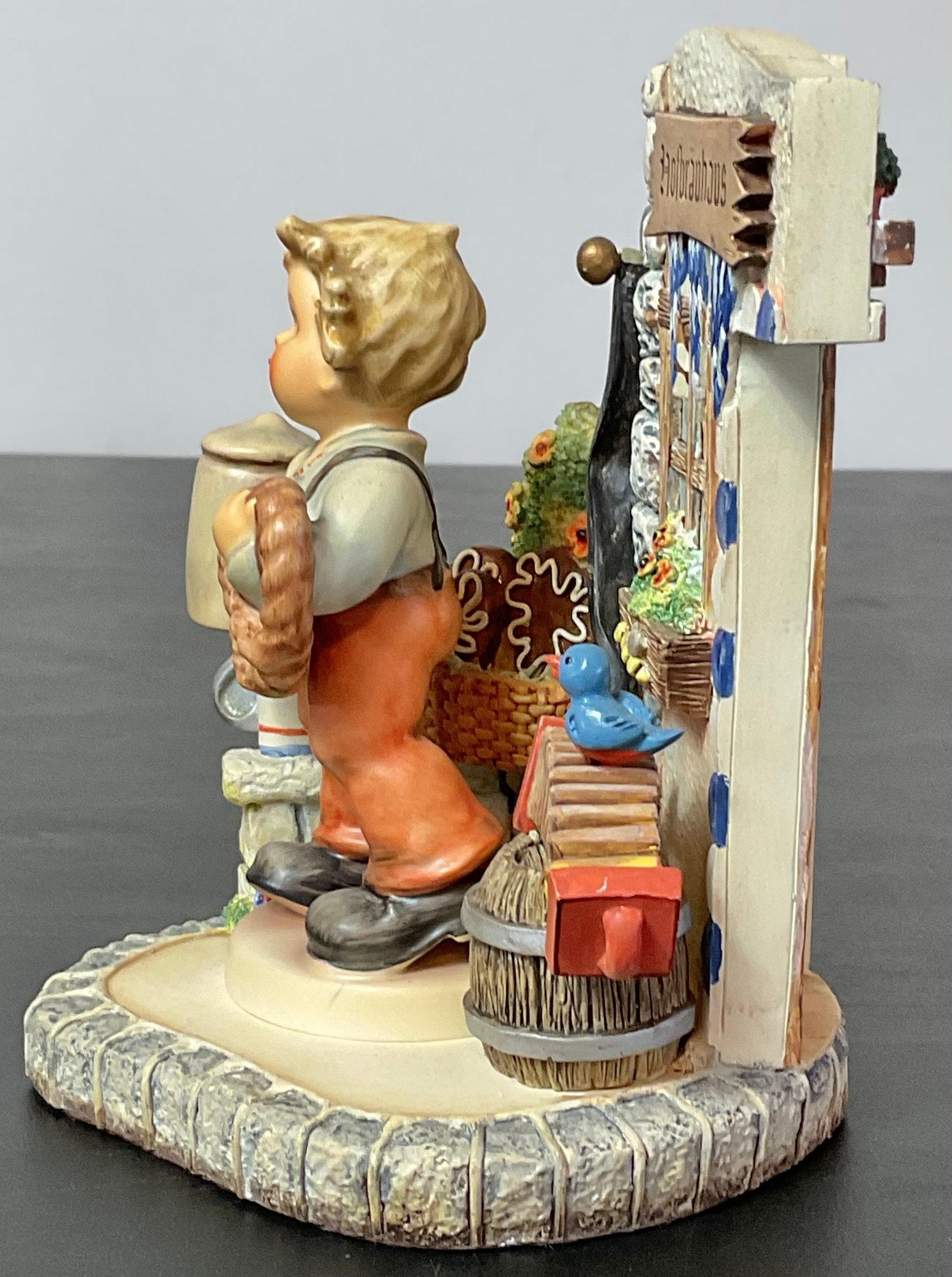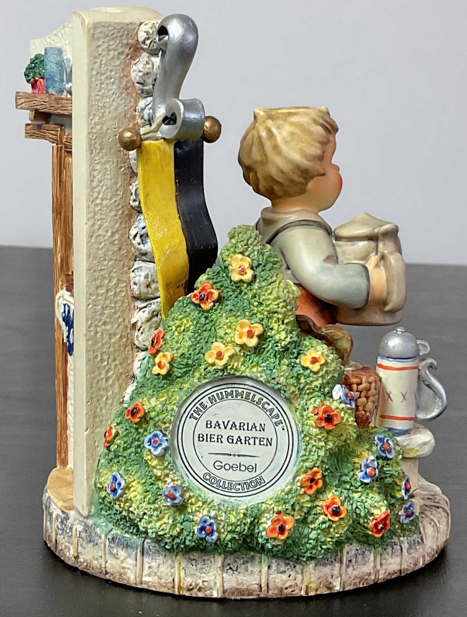 #11- Goebel MJ Hummel - Hummelscapes Collection Bovarian Bier Garten 1999 & Pretzel Boy 2000 first issue - 5.5” tall x5” long x 4.5” wide - no chips - good used condition