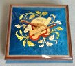 #11 - Italy Inlaid Music Jewelry Box - works - plays Greensleeves - 2.5” tall x 4.75” long x 4.5” wide - good used condition