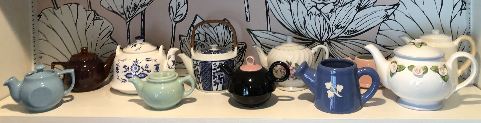11pc Teapot Collection - as found on shelf - 3" to 6" tall - good used condition -