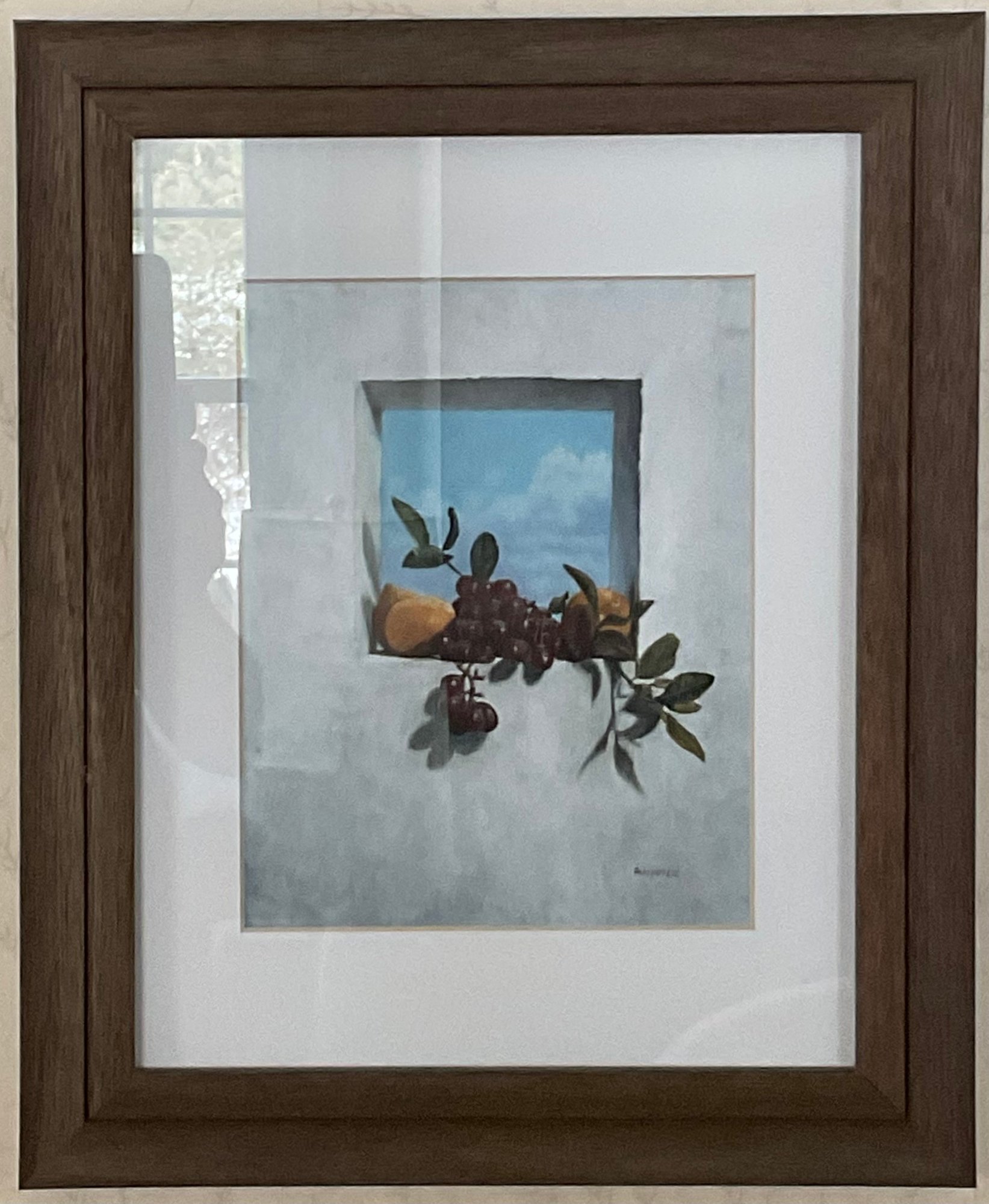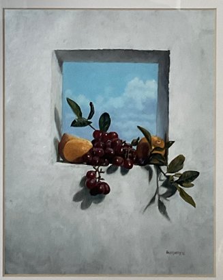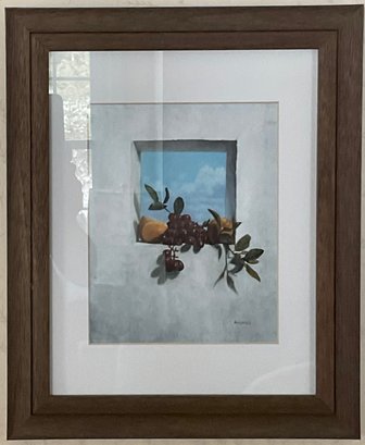 #12 - A. Droungas Still Life Fruit In Window Print - 17” x 14” - good used condition