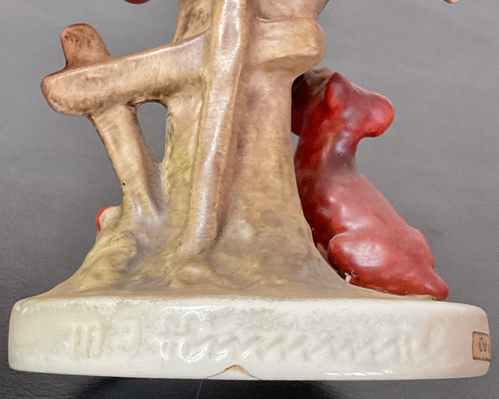 #12- Goebel MJ Hummel - Out Of Danger - small base chip - 6.25” tall - good used condition