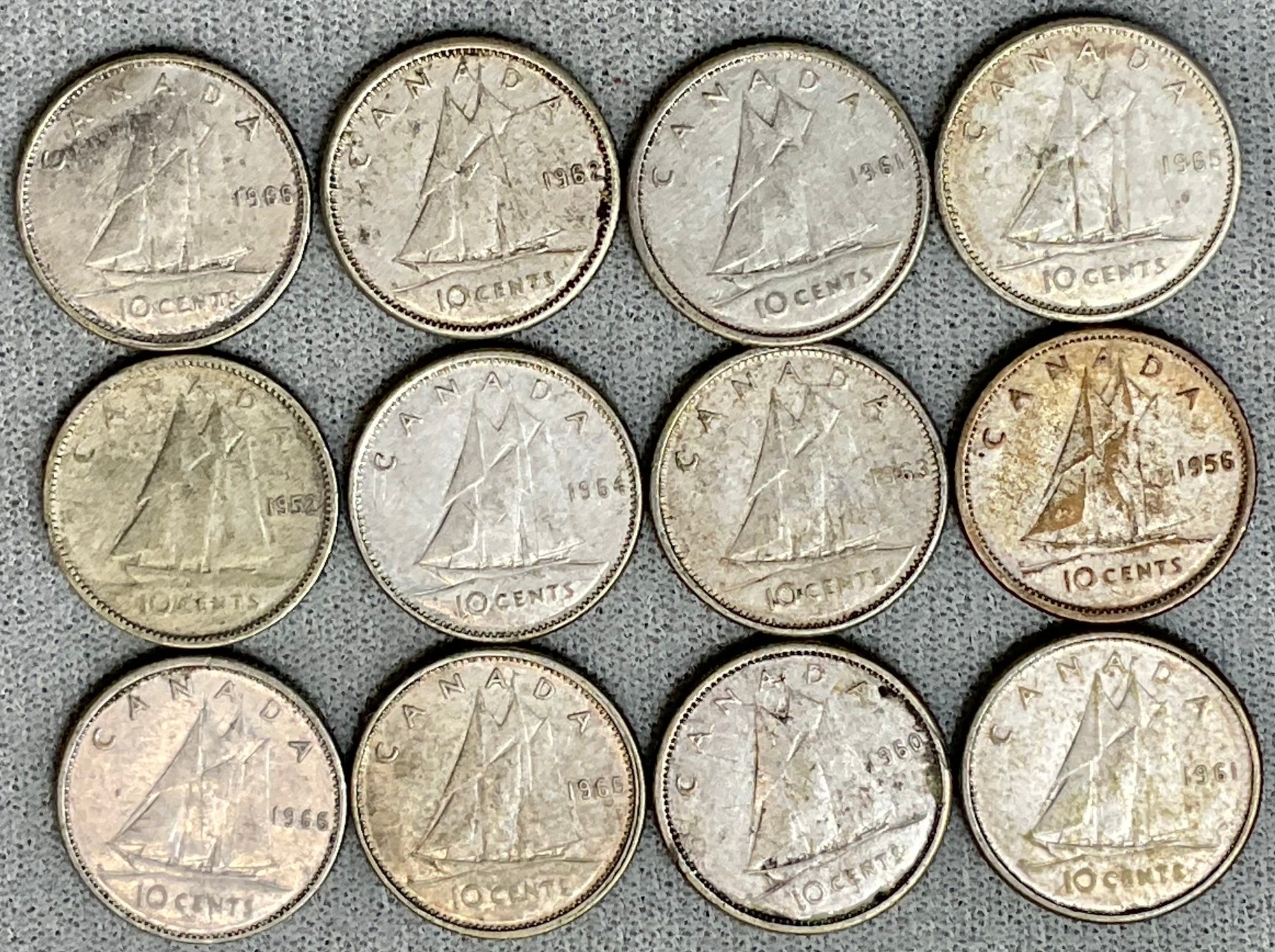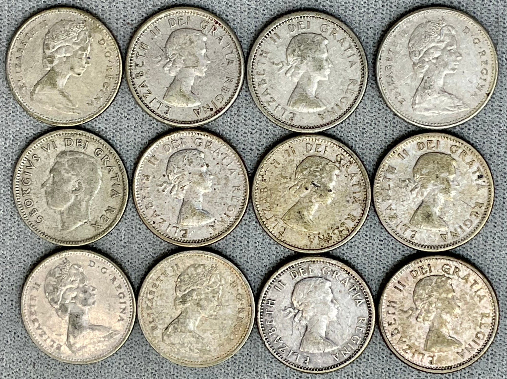 12pc Silver Canadian Dimes - 80% silver - good used condition
