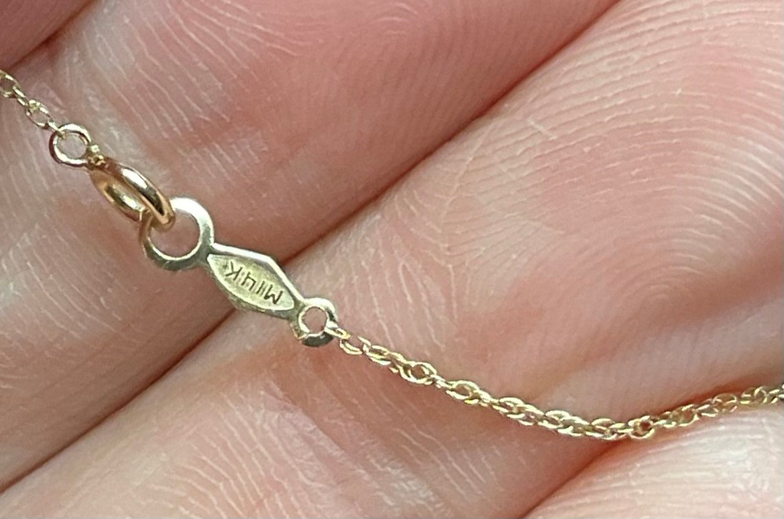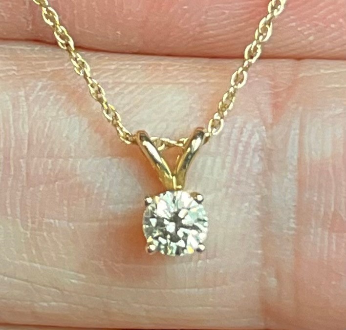 14k - .25 Carat Diamond Pendant Necklace -chain 18” long - clean stone - weighs 1 gram - good used condition