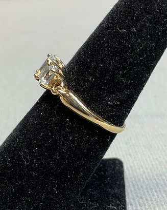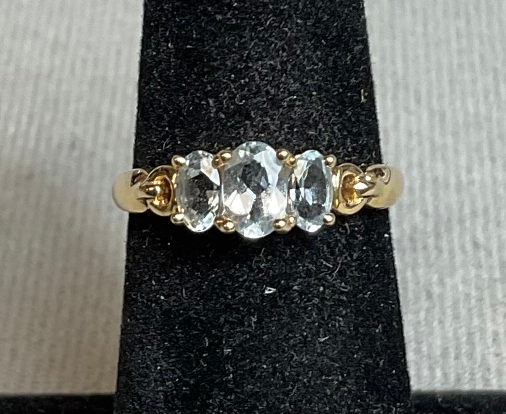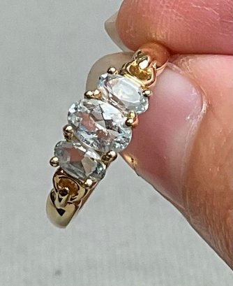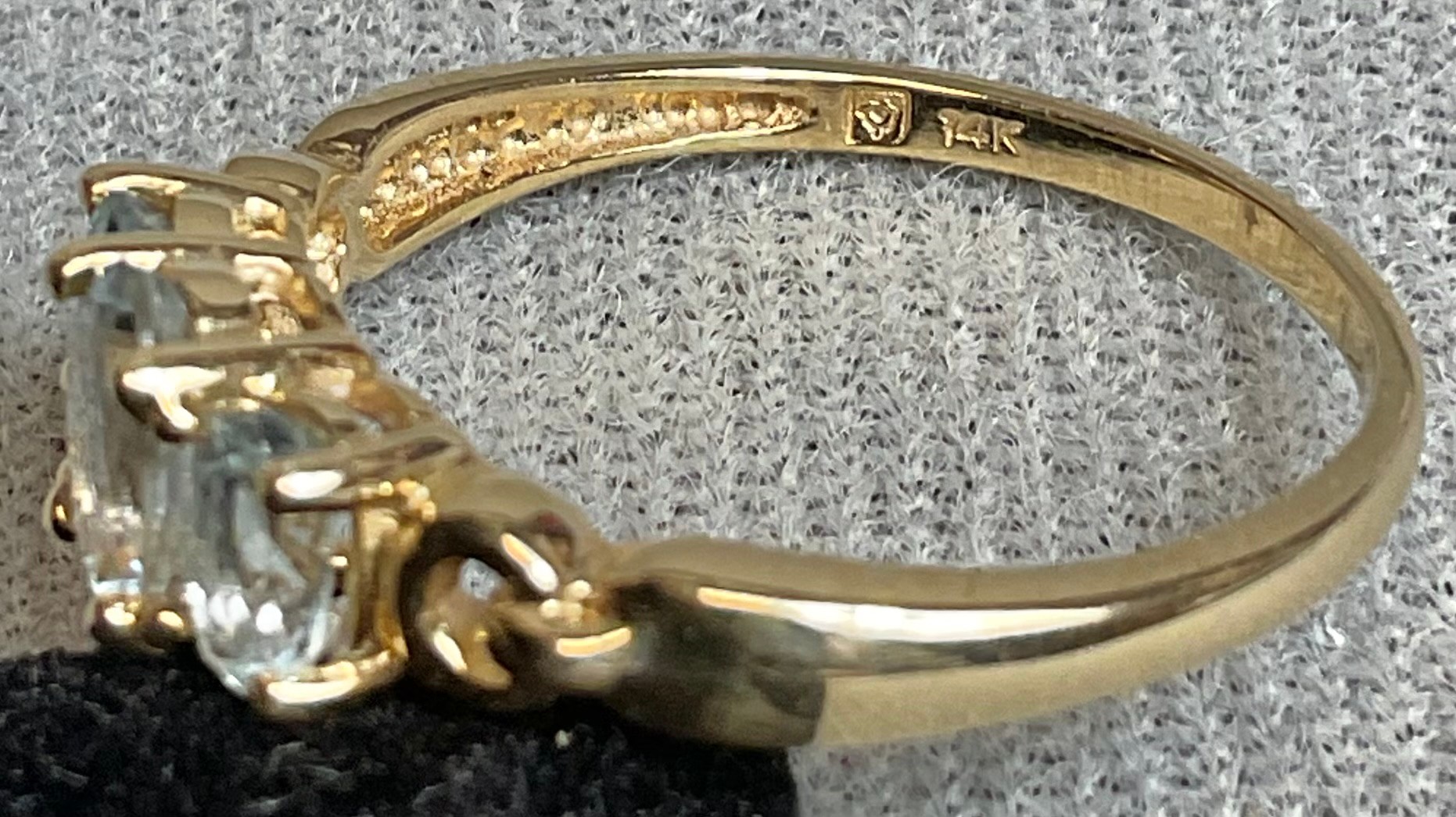 14k Aquamarine Ring - size 6.75 - weighs 2.2 grams - good used condition