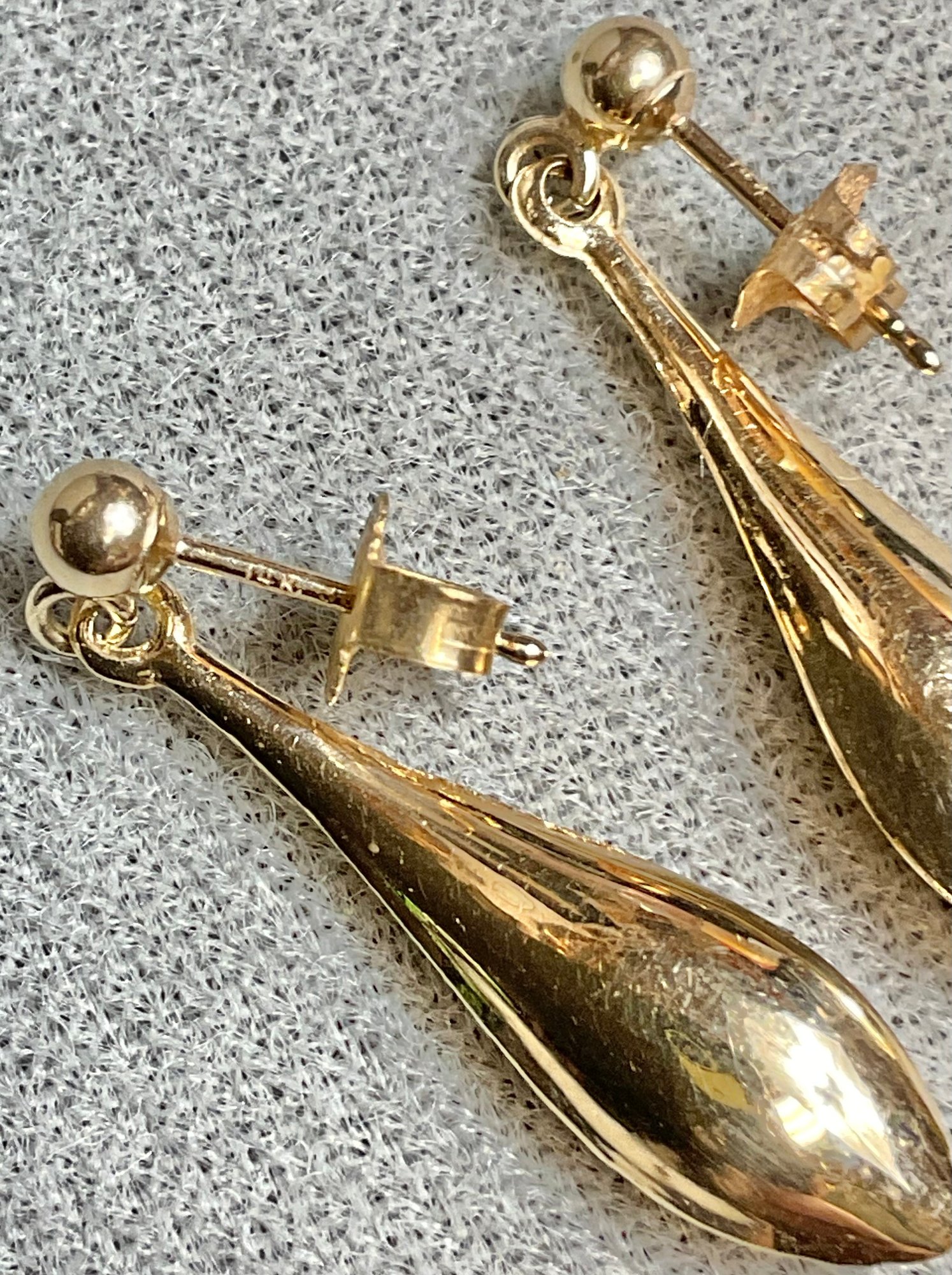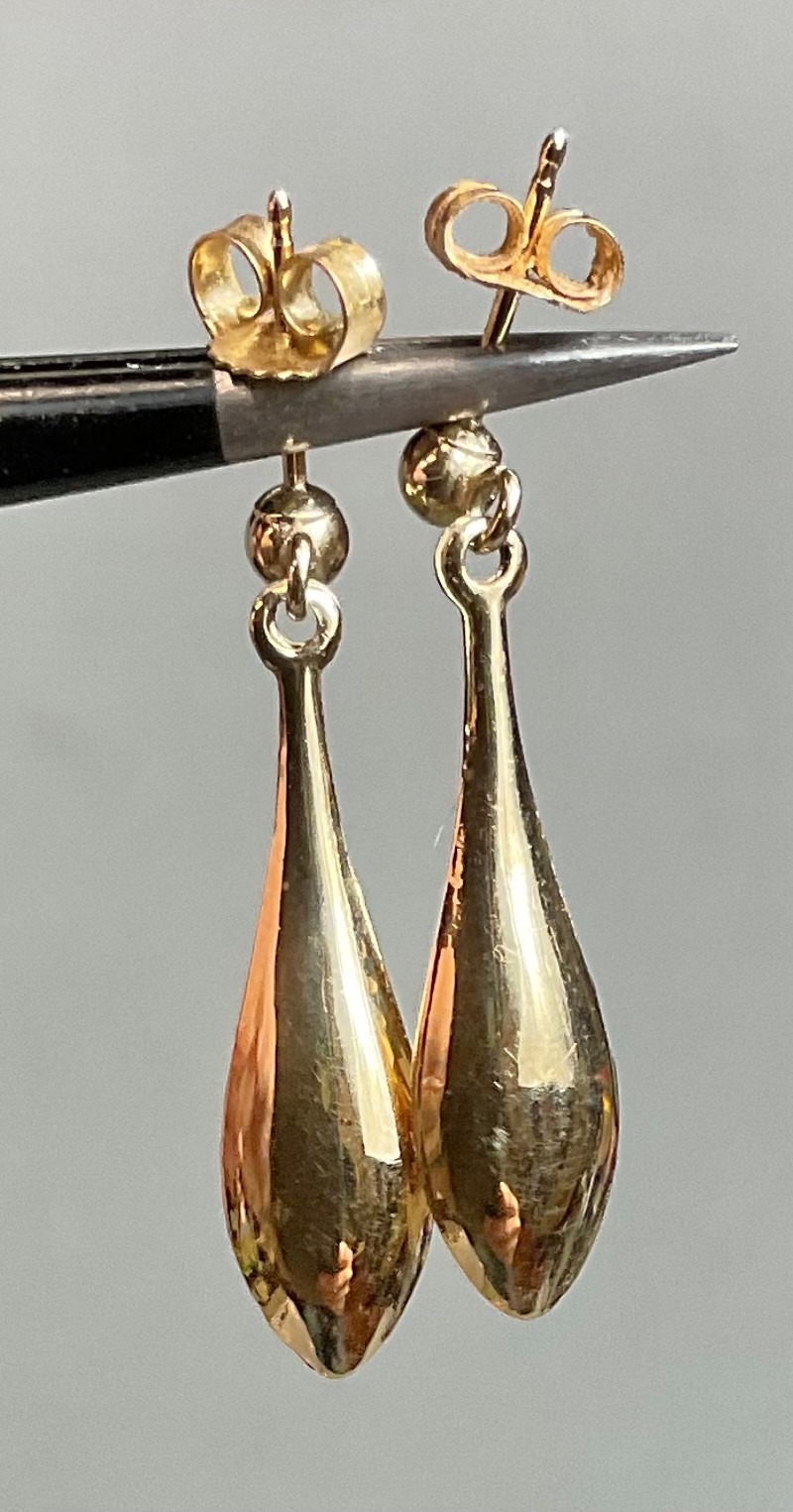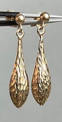 14k Dangle Earrings - 1 1/8” - weighs .8 grams - good used condition