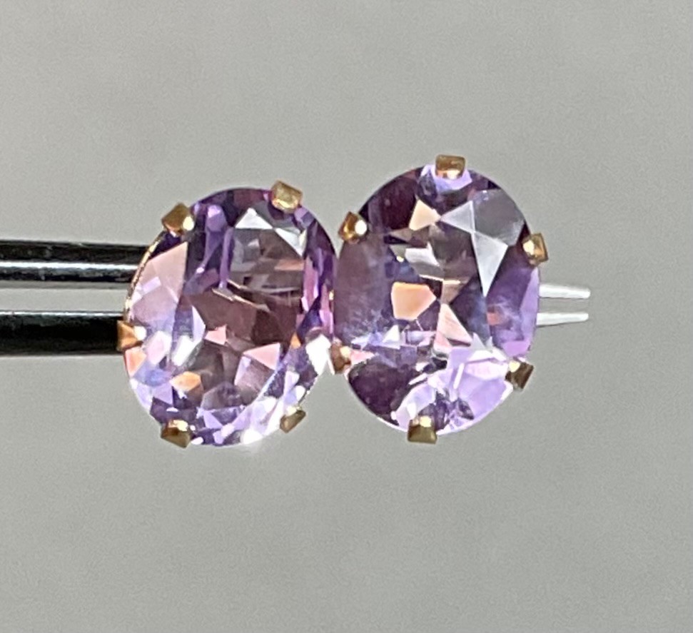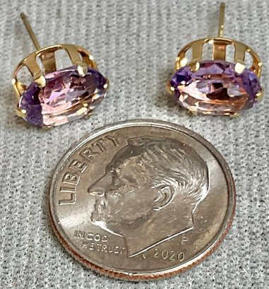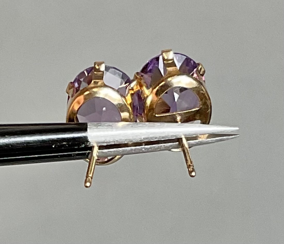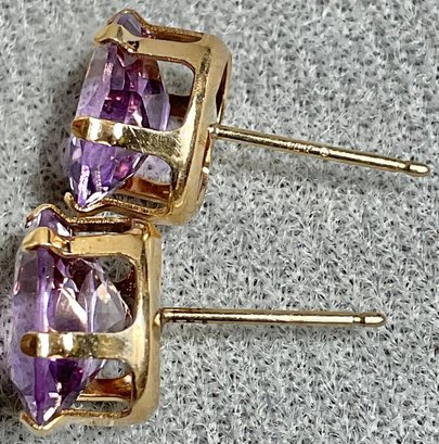 14k Gold Amethyst Stud Earrings - missing backs - good used condition